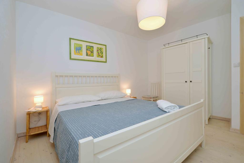Ta čudovita tradicionalna dalmatinska kamnita hiša se nahaja v starem delu Betine na otoku Murter. Hiša je sestavljena iz kuhinje, velike dnevne sobe in ene kopalnice v pritličju, druga kopalnica s tremi spalnicami pa je v prvem nadstropju. Velika terasa z vrtno garnituro se nahaja v prvem nadstropju. Kuhinja je popolnoma opremljena. Parkirišče je približno 150 metrov od hiše in je vključeno v ceno apartmaja. Čiščenje apartmaja se doplača 65 eur (enkrat).