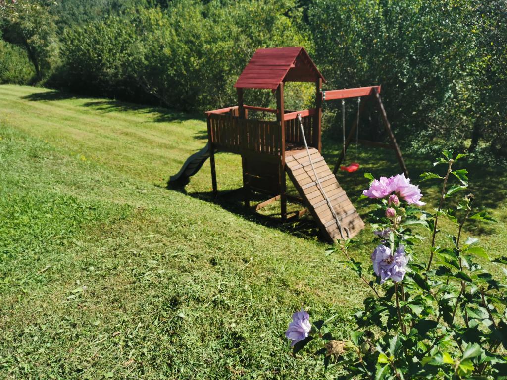 Turistična taksa je vključena v ceno.Obdan z zelenjem, na zadnji strani hiše je sladkovodni bazen v velikosti cca. 24 m2. Bazen je na voljo od 1. 5. -1. 10. odvisno od meteoroloških razmer. Ko ste naveličani plavanja, se sprostite na ležalnikih in uživajte na soncu. Na dvorišču je kamin, ki ponuja možnost priprave okusnih dobrot na prostem, z mirnim in sproščenim vzdušjem. Za naše najmlajše goste, za družine z otroki, tudi na dvorišču vile Mandalena je otroški kotiček, s toboganom in gugalnico, kjer bodo vaši otroci resnično uživali in se zabavali