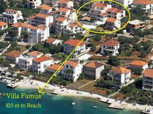 Trenutno vam ponujamo možnost izbire 4/2 +1 spalnice s klimatsko napravo, telefon, dostop do interneta in hladilnik. Vse sobe so na površju 30m2 s teraso s pogledom na morje 2/2 +2 apartmaji s kuhinjo, klimatsko napravo, telefon, internet in teraso s pogledom na morje in površina je 42m2. "Villa Fumija" je oddaljen 100 m od morja in ima zasebno parkirišče za avtomobile in avtobuse.
