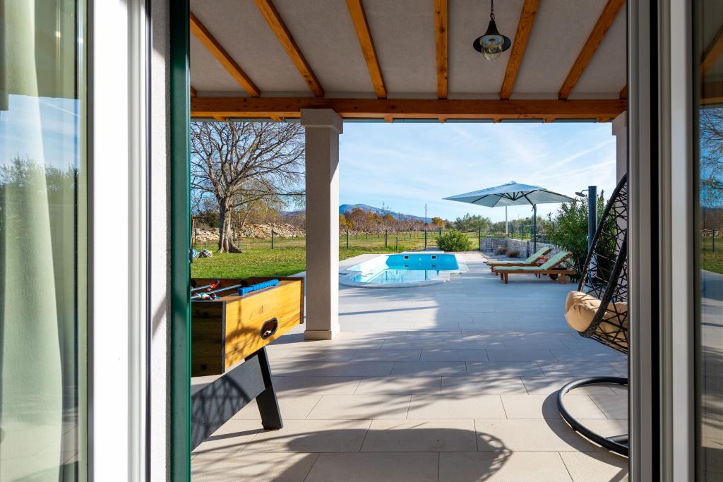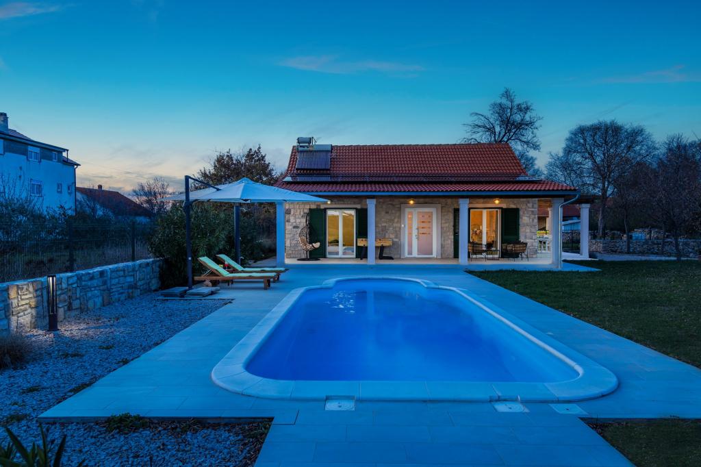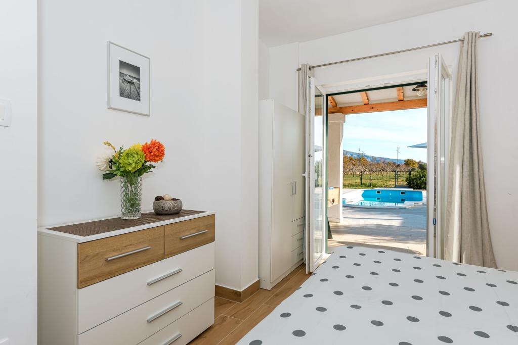 Če želite občutiti čare Dalmacije, uživati v zasebnosti obdani z zelenjem daleč od vsakdanje gneče, je Villa Bajadera pravi kraj za vas. Okrašena v kombinaciji kamna, lesa in modernih motivov je idealna za sprostitev duha in telesa. Le 4 km oddaljeni od Narodnega parka Krka, kulturnih spomenikov in spomenikov pod zaščito Unesca, se lahko zabavate v vožnji s kanujem ali jahanjem. Vila Bajadera je na novo zgrajena in popolnoma opremljena z dvema spalnicama, kuhinjo in jedilnico, kopalnico in lepo teraso s pogledom na bazen in oljčni nasad. Vsaka soba je klimatizirana posebej.