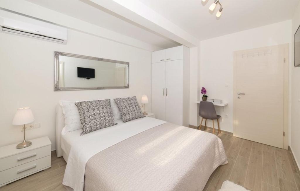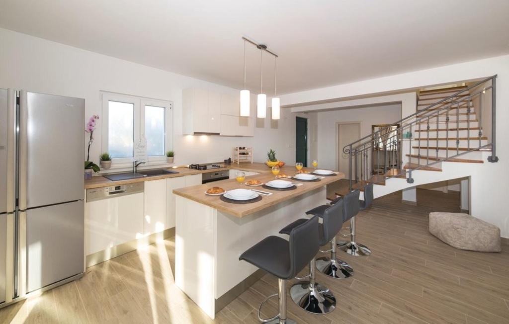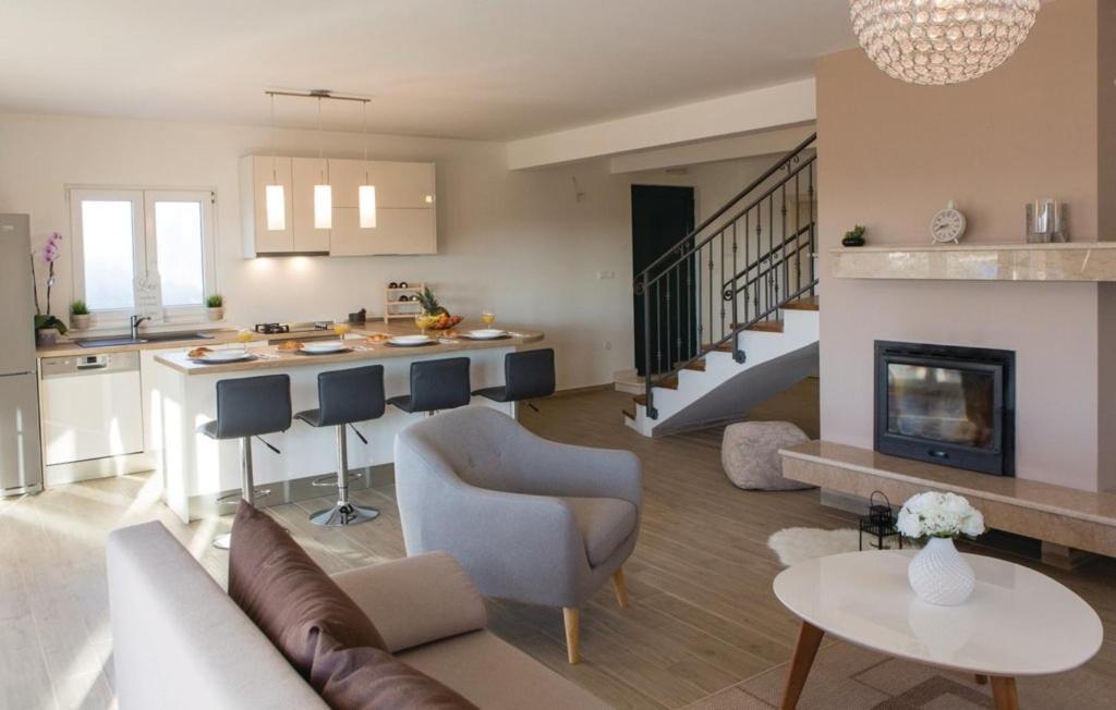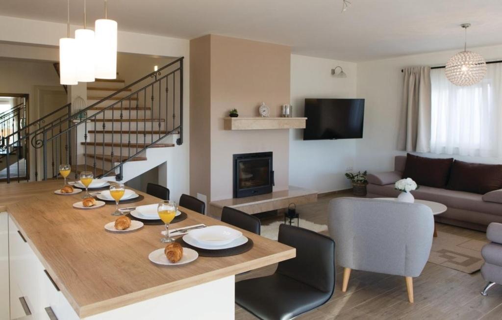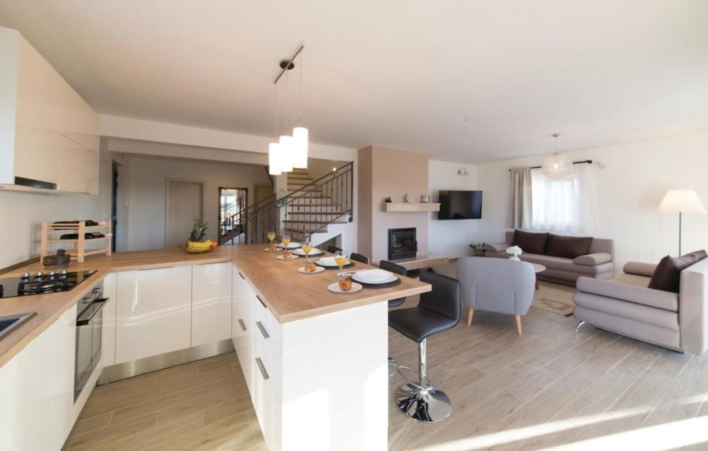Prostorna luksuzna hiša 250 m2 na obali, na zemljišču 2000 m2, prva vrsta do morja, s 4 spalnicami in 4 kopalnicami, veliko kuhinjo in dnevno sobo, zunanjim kaminom in zunanjo jedilnico. Na parceli, tik ob morju, se nahaja jacuzzi, ležalniki za sončenje, zunanji ogrevani tuš. Peščena plaža je oddaljena le 50 m in sprejme 10 odraslih oseb z možnostjo 2 manjših otrok. Hiša je idealna za družine, zaradi bližine plaže za pešce in vseh dodatnih vsebin. Zasebnost je zagotovljena.