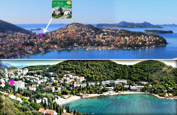 Villa Micika je najboljša rešitev za udobne počitnice v Dubrovniku. Odprt vse leto, in med božičnimi in velikonočnimi prazniki Villa je primerna tako za poslovneže in turiste. Vila se nahaja v mirnem območju Dubrovnika, znan kot Lapad, obkrožen s palmami in drugimi sredozemskimi rastlinami. To je le 300 metrov od plaže in 10 metrov od teniških igrišč. Sestavljen je iz 8 sob kategorizirana 3 zvezdice. Sobe imajo zmogljivost 12-15m2 in ima 8 zakonski postelji in lahko sprejme do 16 ljudi. Stavba stoji na samem in se nahaja v dveh nadstropjih. Vse sobe imajo pogled na lepe zelene površine in so opremljene s kopalnico, tušem, WC, TV-SAT, klima in vse sobe sistem centralnega ogrevanja. V stavbi je skupna terasa in zasebno parkirišče off-road za avto