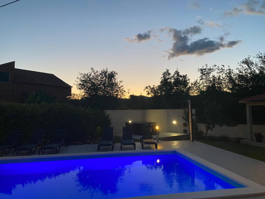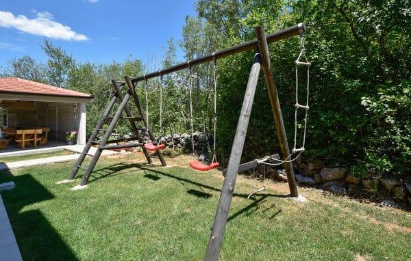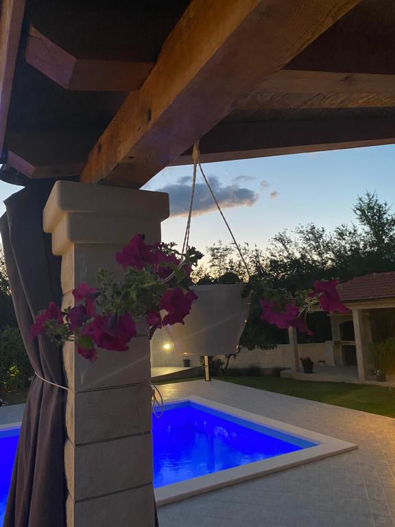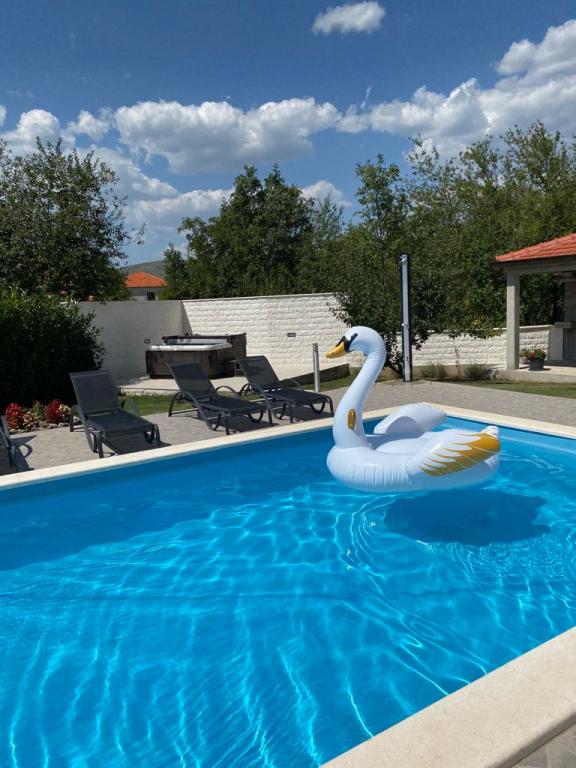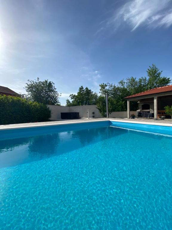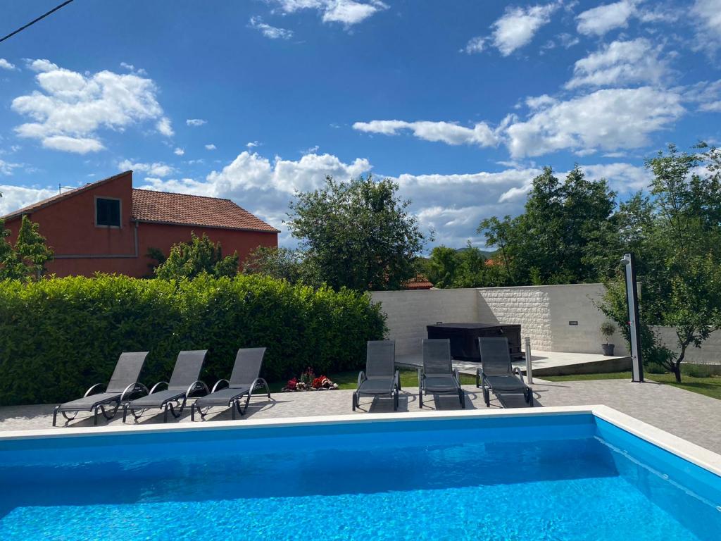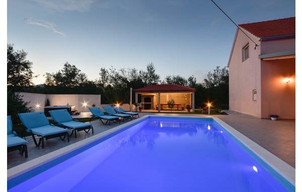 Ta čudovita vila z ogrevanim bazenom (8X4m) se nahaja v majhnem mirnem kraju Dugopolje le 15 km od Splita. Hiša je opremljena z vsem, kar sodobna družina potrebuje za prijetne počitnice. Hiša je zelo prostorna in obdana z naravo, zato je idealen kraj za sprostitev in pobeg od napornega načina življenja. V pritličju je prostorna dnevna soba, kuhinja, kopalnica in telovadnica. Iz dnevne sobe je izhod na prostorno teraso in vrt z ekološko pridelano zelenjavo. V zgornjem nadstropju so 4 spalnice in kopalnica. Sprostite se lahko tudi v jacuzziju in savni. Ob vrtu je žar z veliko leseno mizo in klopmi ter gugalnico za najmlajše. Gostje se lahko zabavajo tudi pri namiznem tenisu, na voljo pa so tudi kolesa. Nepremičnina je ograjena, tako da lahko gostje uživajo v popolnem miru in zasebnosti.