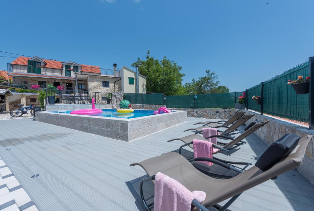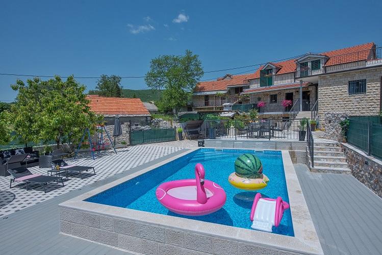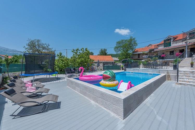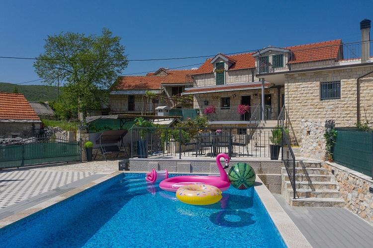 Lepo urejena počitniška hiša Stipanovi Dvori z bazenom v dalmatinskem zaledju, obdana z zelenjem, naravnimi rastlinami in živalmi. Nahaja se približno 25-30 minut vožnje od Makarske riviere. Obdan je z naravnimi lepotami, ki ponujajo svoje čudovito bogastvo (vodnjaki, skale, različne rastline, ceste, starejše od 100 let in več ..) Hiša je sestavljena iz dveh nadstropij in podstrešja. V pritličju je kopalnica in gostilna s kaminom. V prvem nadstropju je velika kuhinja z dnevno sobo, v tretjem pa dve spalnici, kopalnica in velika terasa s pogledom na planino Biokovo. Hiša je opremljena s sodobno tehnologijo (WiFI, pametna TV, spalnice s TV, satelitski programi). Vsem želim toplo, prijetno in prijetno bivanje!