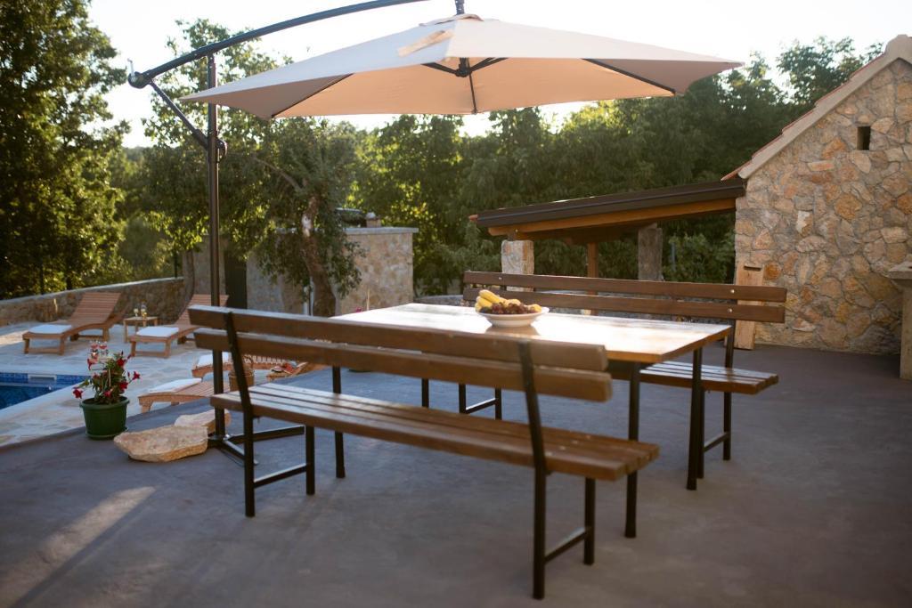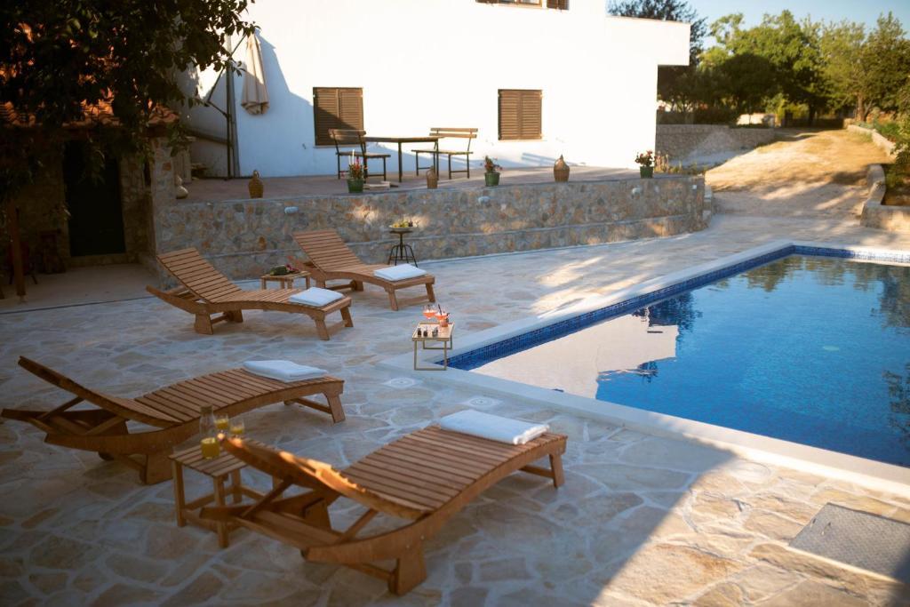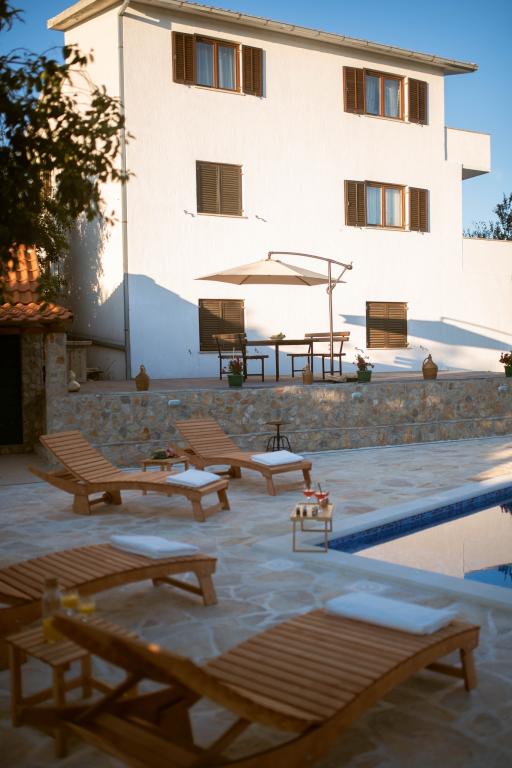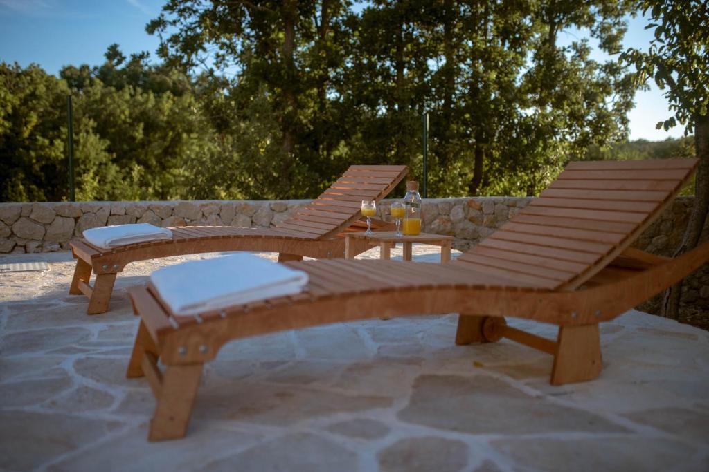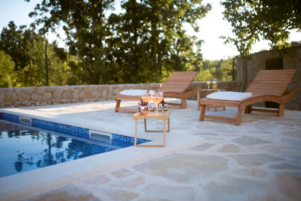Poleg nastanitve lahko gostje uporabljajo lokalne sezonske pridelke z vrta, kot so: češnje, jagode, višnje, jabolka, hruške, slive, rožmarin itd. Počitniška hiša Pearl in Stone se nahaja v očarljivem mestecu Gornji Vinjani in ponuja prostoren vrt, mir, zasebni bazen ter pogled na dvorišče in gozd. Ima 4 spalnice, TV z obilico programov, klimatsko napravo in brezplačen WiFi. Popolnoma opremljeno kuhinjo s pomivalnim strojem in hladilnikom, pralnim strojem ter kopalnico s tušem v stranišču in pralnico. Ponuja sezonski ogrevan zunanji bazen velikosti 9x4 m z ločeno igralnico in zabavo ter žar. Gostje se lahko sprostijo na lepo urejenem vrtu. Na voljo so vam 2 kolesi in kajak, namizni tenis, namizni nogomet, pikado in druga oprema. Počitniška hiša Pearl in Stone ima 4 spalnice: 2 sobi z veliko zakonsko posteljo in 1 sobo z