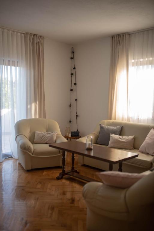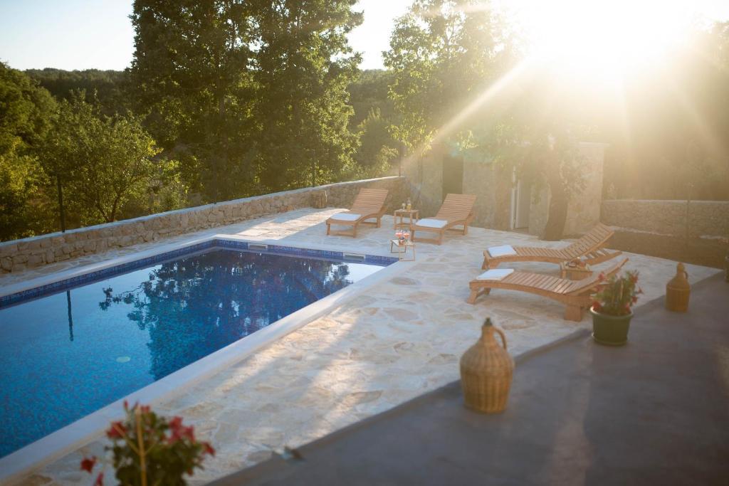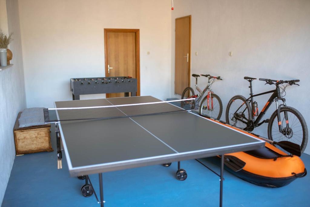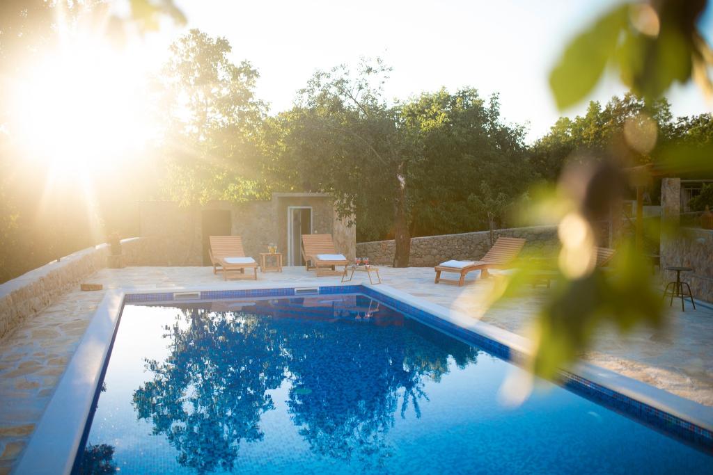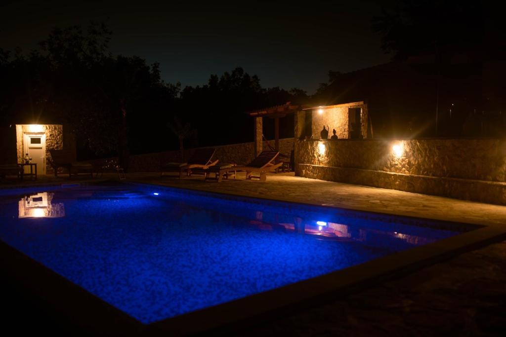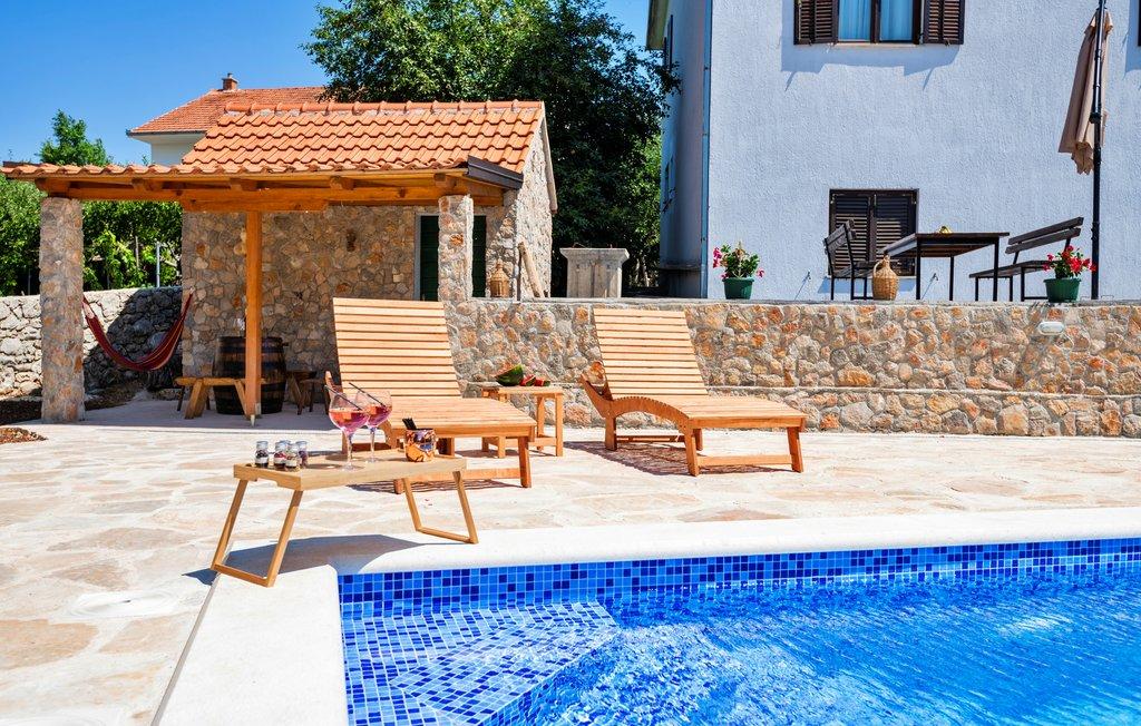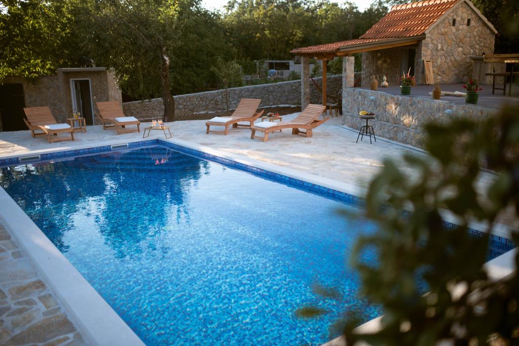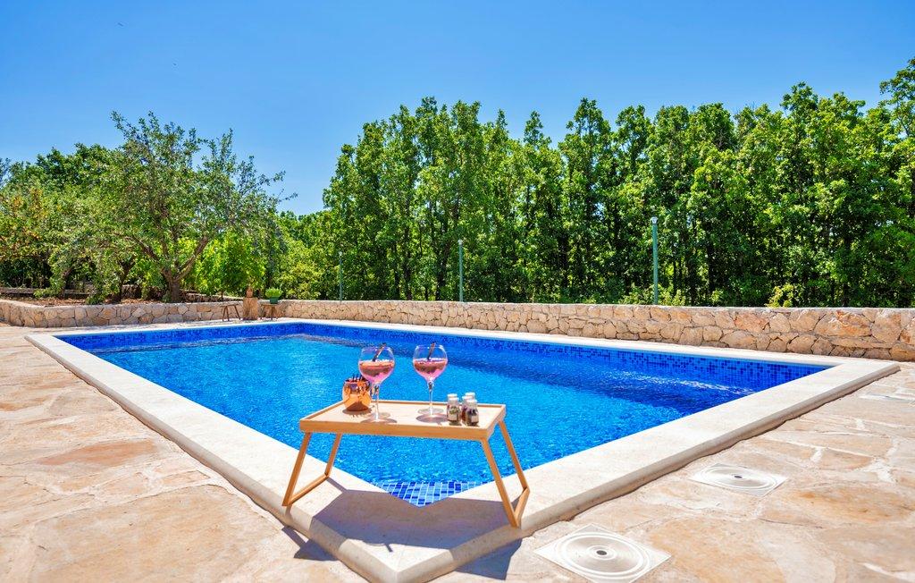 Prostorna namestitev: Počitniška hiša Pearl in Stone z ogrevanim bazenom v Imotskem. Nepremičnina vključuje dnevno sobo, 4 spalnice in popolnoma opremljeno kuhinjo, otroško igralnico za mlajše otroke ter dodaten prostor za druženje in igro otrok in odraslih. Zunanji objekti: Gostje lahko uživajo v sezonskem zunanjem bazenu, terasi ter prostornem dvorišču in vrtu. Nepremičnina ima zunanji prostor za sedenje, igralnico, otroško igrišče in opremo za peko na žaru. Priročna lokacija: Nahaja se 6 km od središča mesta in 5 km od glavne avtobusne postaje. V bližini sta Modro in Rdeče jezero ter druge privlačne znamenitosti. Visoko ocenjeni s strani gostov: Počitniška hiša Pearl in Stone z ogrevanim bazenom je s strani gostov visoko ocenjena zaradi svoje prostornosti in odličnih objektov.