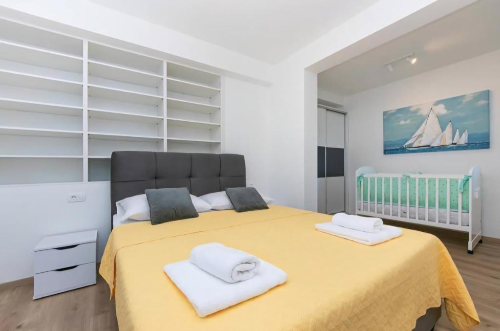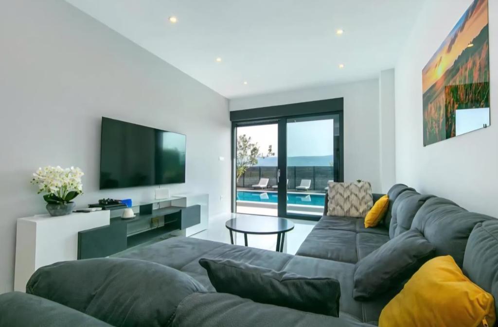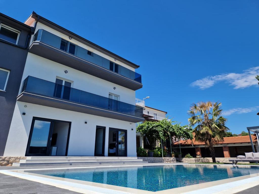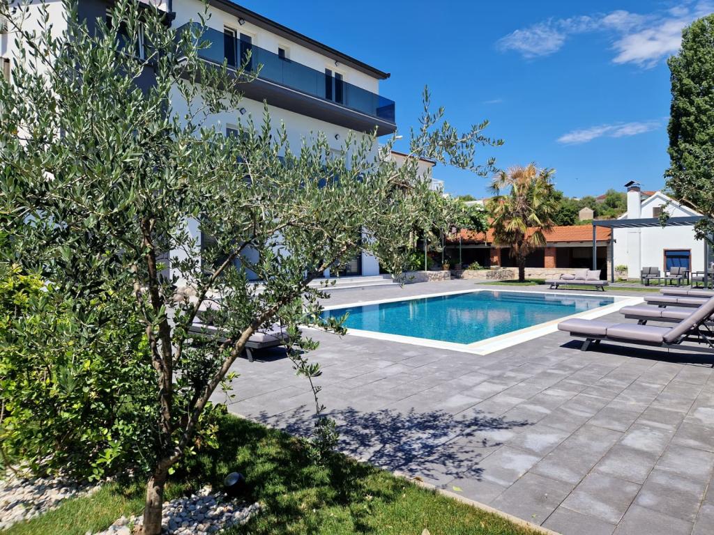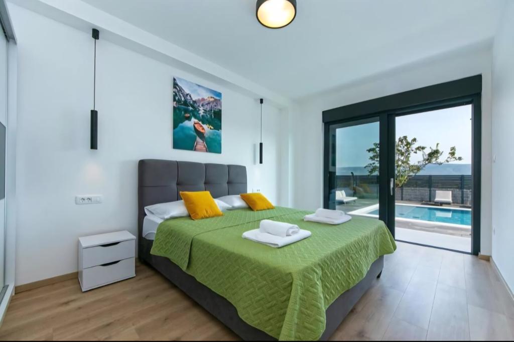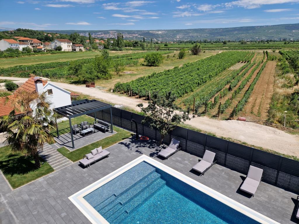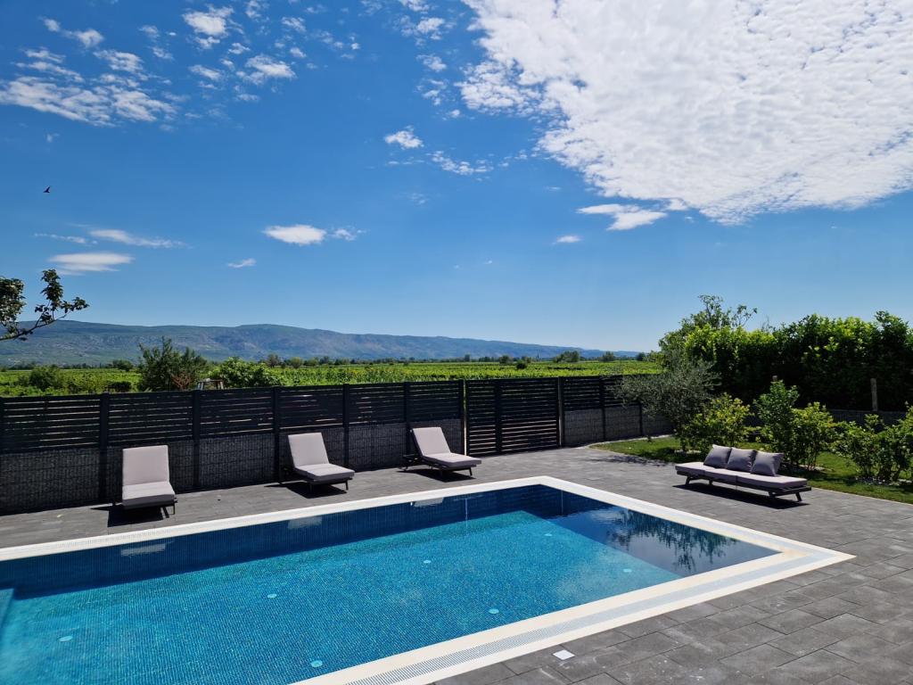 Vila Olea je čudovita in razkošna vila, ki svojim gostom ponuja edinstveno vzdušje za počitek in sprostitev v osrčju Imotske regije, od koder se ponuja nepozaben razgled na Imotsko polje ter Plavo in Crveno jezero. Vila ima velik zasebni neskončni bazen, prostor za zabavo, ki vključuje namizni nogomet, namizni tenis, pikado in igralno površino, ter udoben prostor za žar in zabavo, ki vključuje zunanjo kuhinjo in mini bar. Ob bazenu so udobni ležalniki, zunanji tuš in paviljon za prijetno druženje in sprostitev. V notranjosti vile sta 2 popolnoma opremljeni kuhinji, 5 kopalnic, 6 spalnic z zakonsko posteljo in 2 udobnima raztegljivima kavčema, dve prostorni dnevni sobi z velikimi pametnimi televizorji in igralno konzolo Play Station za zabavo. Vila je v celoti klimatizirana, ponuja brezplačen brezžični internet, brezplačno parkiranje, brisače in posteljnino oziroma vse, kar potrebujete za nepozaben in prijeten oddih. Od morja smo oddaljeni 25 km.