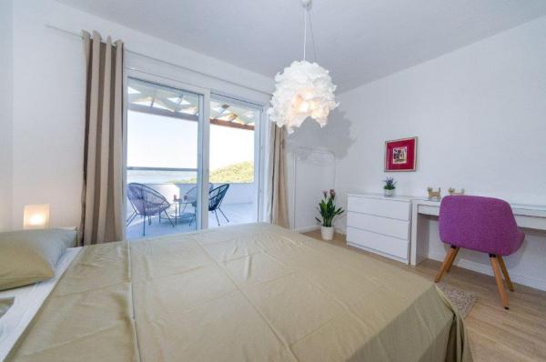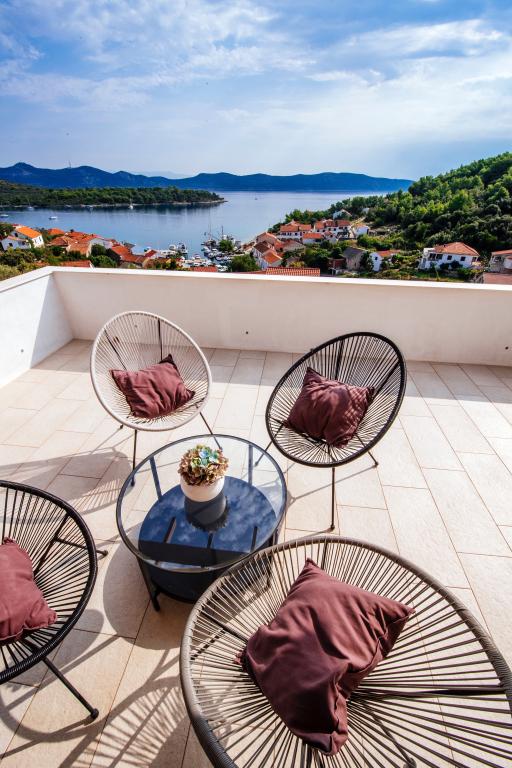 Sprostite se v miru in tišini Villa Aya na čudovitem otoku Iž. Otok Iž se nahaja na pragu narodni park Kornati. Iz Zadra, mesto s 3000 let dolgo zgodovino, ki se nahaja uro in pol s trajektom ali 40 minut vožnje z gliserjem. Njegov položaj in edinstveno naravno okolje, je sinonim za divje, še ekološko ohranjeno naravo. Od približno Iž desetih otokov, ki so vse čoln ali najem, lahko uživate ogled zaliva in plaže, popolni osami in intimnosti. Posebno vzdušje, ki ohranja naš otok je idealna za družinske počitnice in počitnice za svojo dušo. Novo moderno in udobno opremljene Villa Aya z ogrevanim bazenom ima lep pogled na morje in sosednje otoke. Bay Knez nahaja na dlani. . Vila ima tri spalnice, tri kopalnice, risba sobo, kuhinjo in jedilnico, ki so del zunanjo teraso z bazenom, žar. Parkirišče je pred hišo. Domače živali so dobrodošle.