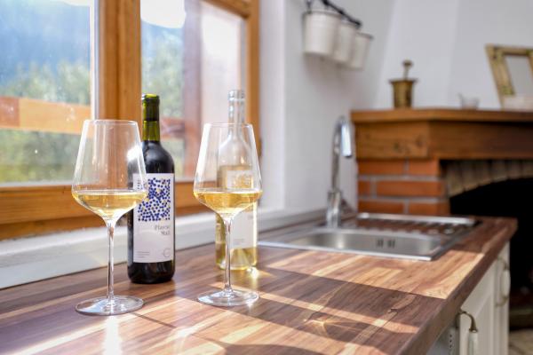 Dve samotni koči v vinogradu s pogledom na morje in Pitve