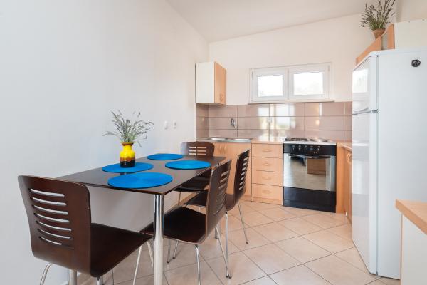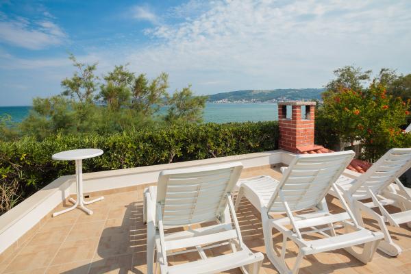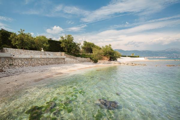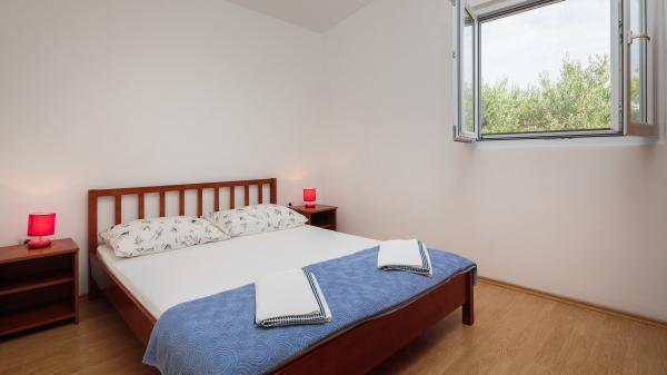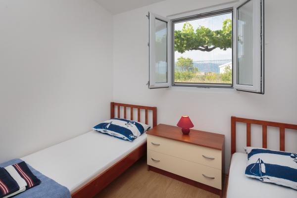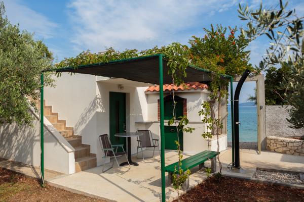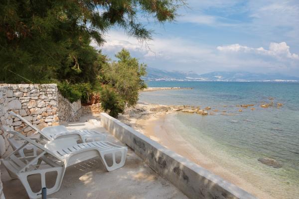 Hiša se nahaja v prvi vrsti do morja z velikim vrtom, od koder lahko pridete neposredno na plažo. Od Trogirja je oddaljen 5 km, od Splita pa 20 km. Hiša se nahaja v majhni vasici Vikendice daleč od hrupa in hrupa in je idealna za miren dopust. Bližina enega najlepših mest v Dalmaciji (20km) in Trogirja (5km) daje možnost večernih izletov in izletov. V bližini je arheološki park Salona (10 km). Šibenik in narodni park Krka sta oddaljena 50 km. Hiša je sestavljena iz dnevne sobe, kuhinje in 2 spalnici. Ena soba ima 2 ločeni postelji, druga soba pa ima zakonsko posteljo. Ostalo: parkirišče, velik vrt s kaminom in žarom. V dnevni sobi je raztegljiv kavč, kjer lahko spi 1 oseba. Kopalnica je opremljena s tuš kabino in pralno-sušilnim strojem. V kuhinji je pomivalni stroj. Z vrta stopite navzdol po plaži. Na vrtu je zunanji tuš in terasa s pogledom na otok Čiovo. Idealno za tiste, ki ne želijo ves dan pobegniti iz kosti!