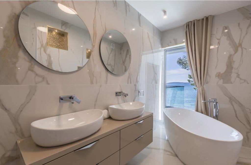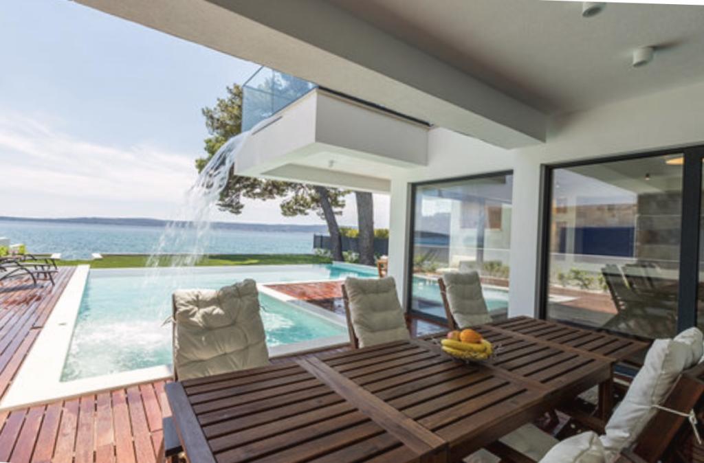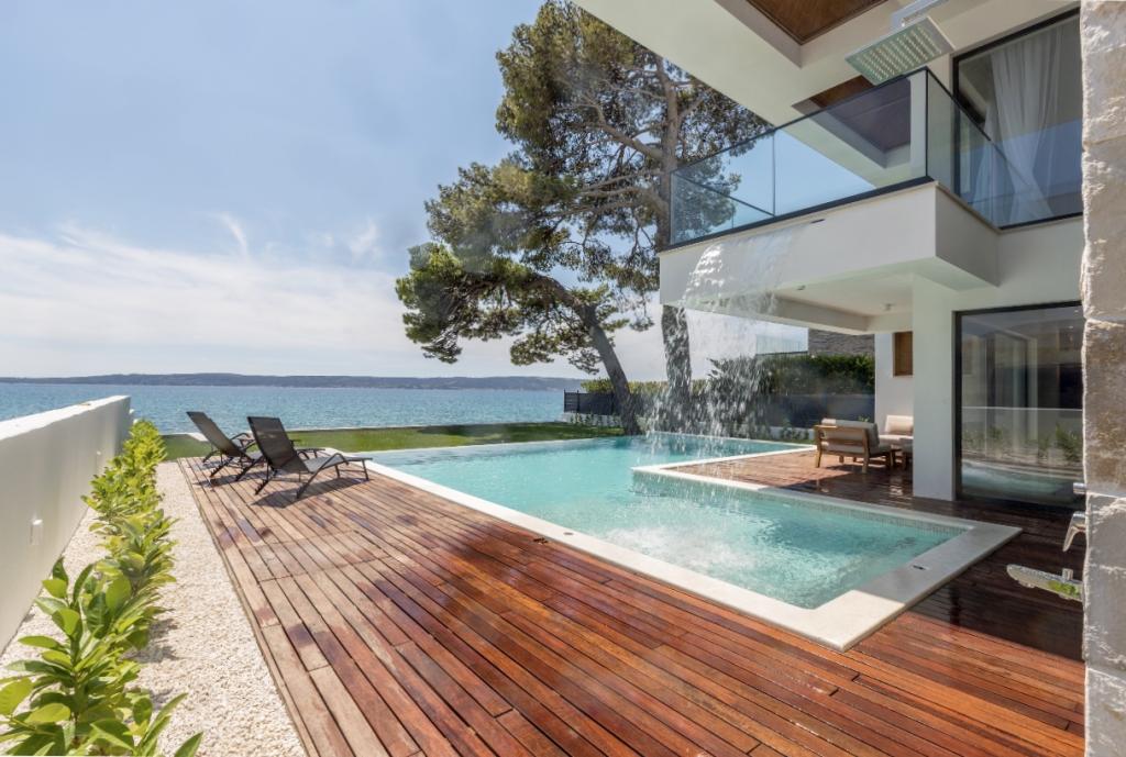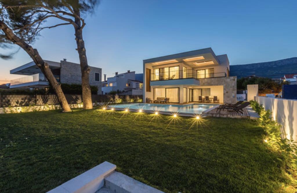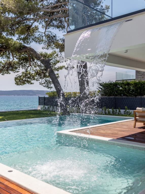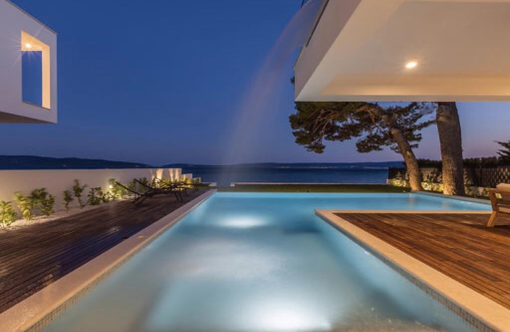 Vila Sea Star je skrbno zasnovana, izžareva razkošje in udobje ter je pravi primer moderne vile, ki se razprostira v treh etažah: kleti, pritličju in nadstropju. Z južnih balkonov je pogled na čudovito modro Jadransko morje vse do Čiova in Splita. Vila ima 4 spalnice, 4 kopalnice in zunanji WC ob bazenu in je idealna namestitev za 8 oseb. Z balkona glavne sobe se slap spušča v prostoren bazen. Površina vile je 1200m2, stanovanjski del pa 400m2. Dvorišče je obogateno z neskončnim bazenom, zunanjim žarom in salonom s čudovitim pogledom na modro Jadransko morje, do plaže in vhoda v morje pa vas loči le nekaj korakov. Vila ima tudi garažo in zasebno parkirišče za 4 avtomobile. Vaš prihod vam omogoča, da uživate v lepoti počitka in razkošja, ki ga lahko nudita le Dalmacija in vila Sea Star.