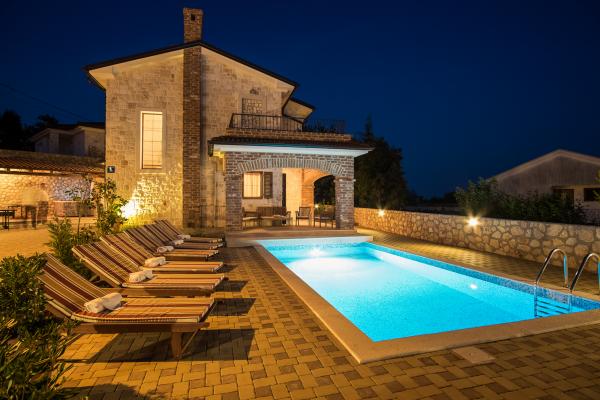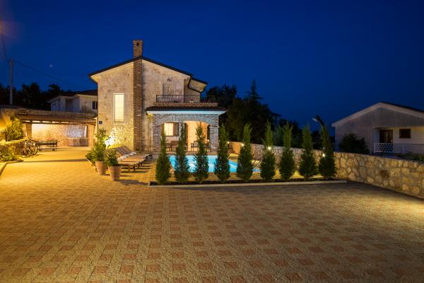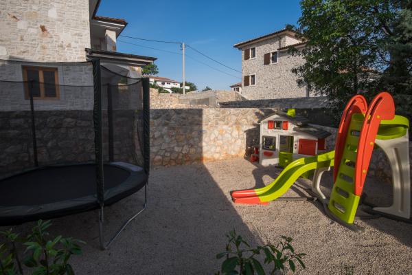 Villa dvorišče je lepa kamnita hiša, ki ponuja idealno počitnice. To je kategoriziran s petimi zvezdicami. To se nahaja na otoku 15 minut vožnje od centra mesta. To je v celoti opremljena in moderno. Zunanja površina ima tri parkirna mesta, bazen, otroško igrišče, žar, jackuzijem in namizni tenis. Bazenu vključuje senčnik in šest ležalniki za popolno sprostitev. Za naše goste, smo našli tudi štiri proste kolesa uživajo jahanje v naravi. Notranjost vključuje kuhinjo z vsemi aparati, dnevna soba in jedilnica in WC. V mansardi so tri spalnice in dve kopalnici. Celotna vila ima 4 klimatsko napravo, brezplačen internet, štiri televizorje s satelitskimi programi. Z balkona hiše, je lep pogled na otok Cres.