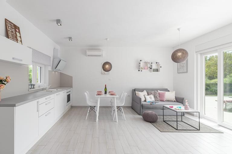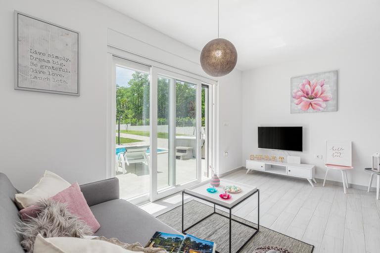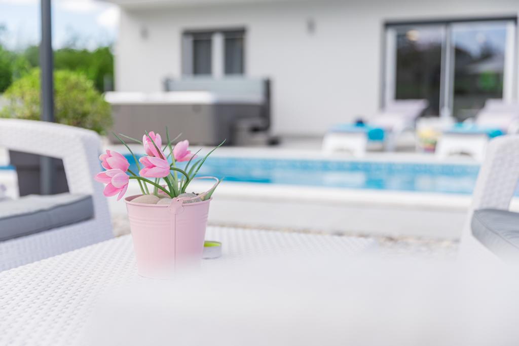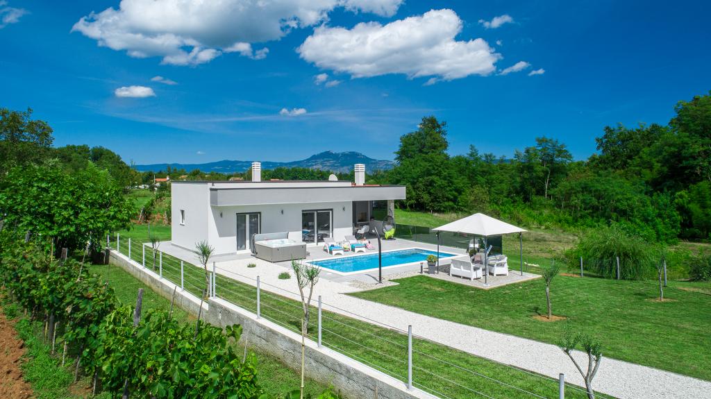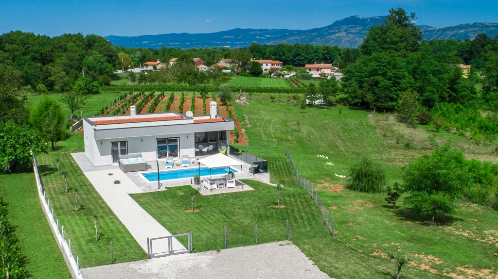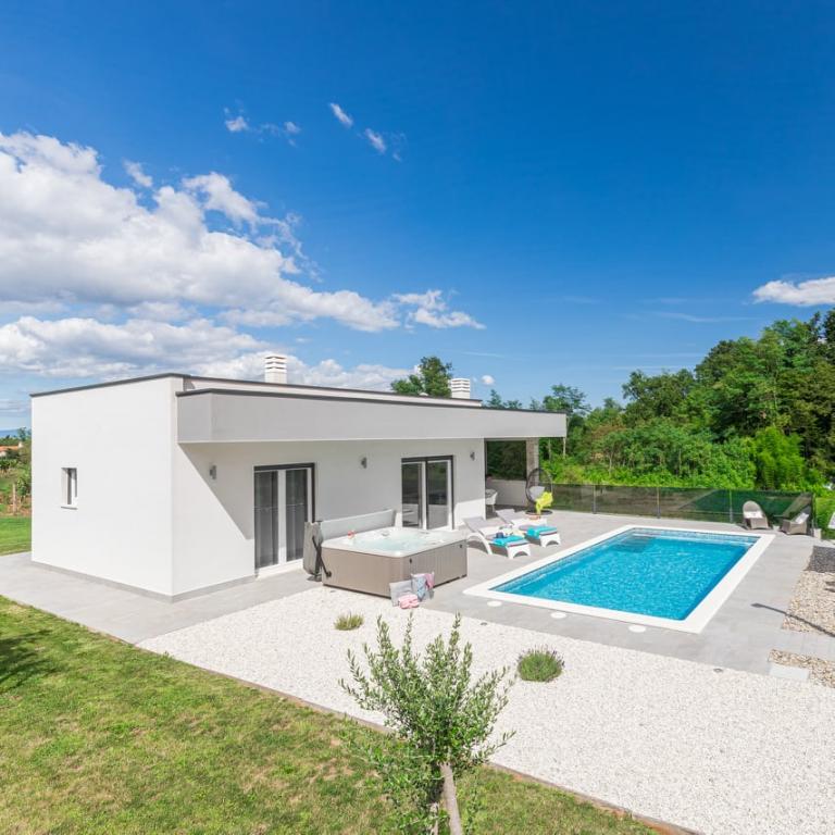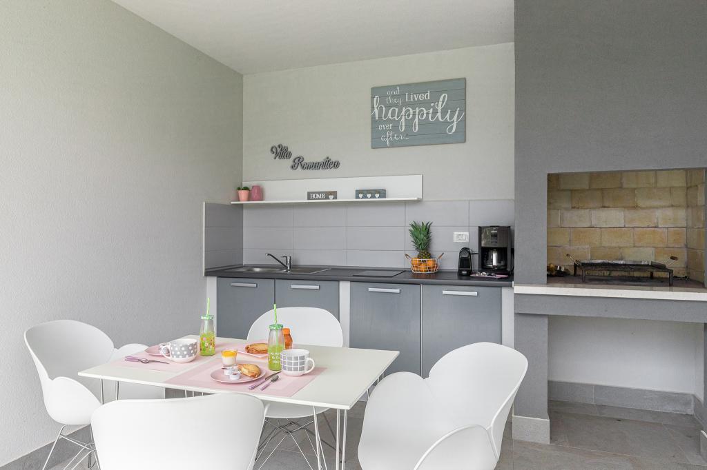 Villa Romantica je na novo zgrajena in moderna hiša, ki se nahaja v majhni vasici Zupanici v bližini Labina. Obdan je z vinogradi in zelenjem. Ponuja popoln mir in tišino, daleč od vrveža. Najbližje trgovine in restavracije so oddaljene 2 km, drugi objekti pa so v bližnjem Labinu oddaljeni le 7 km. Villa Romantica obsega površino 50m2 in je sestavljena iz dnevne sobe z raztegljivim kavčem za dve osebi (140x200), satelitsko televizijo, brezplačnim internetom, mizo in stoli za 4 osebe ter popolnoma opremljeno kuhinjo, pomivalnim strojem, mikrovalovno pečico, aparatom za kavo, pralni stroj, brisače. . Ima eno spalnico z zakonsko posteljo, satelitsko televizijo, vrata v zunanji bazen in kopalnico (tuš / WC). Zunaj je vrt v velikosti 800m2, zunanji bazen pa 32m2 s hidromasažo. Novo za naše goste Zdaj ponujamo zunanji jacuzzi (210cm x 210cm). Jacuzzi ima 3 sedeže in 2 naslonjala. Villa Romantica je odprta vse leto.