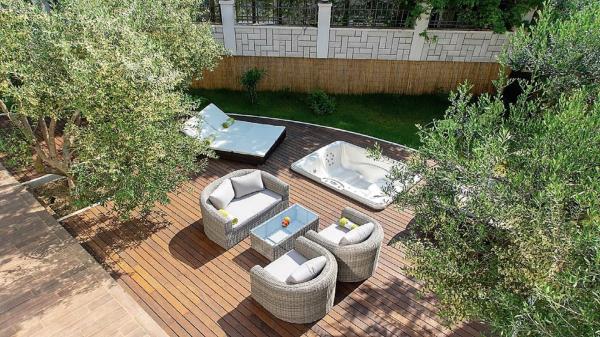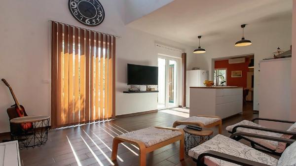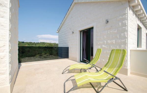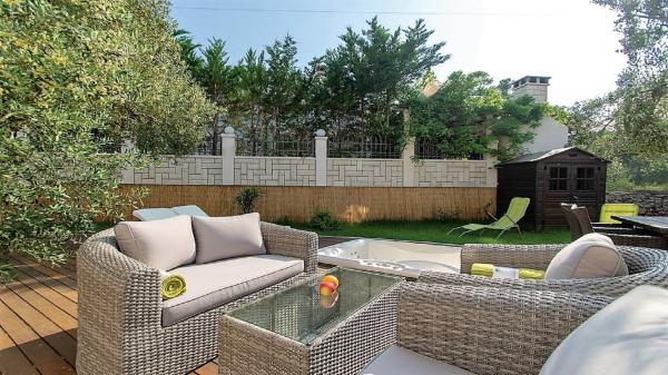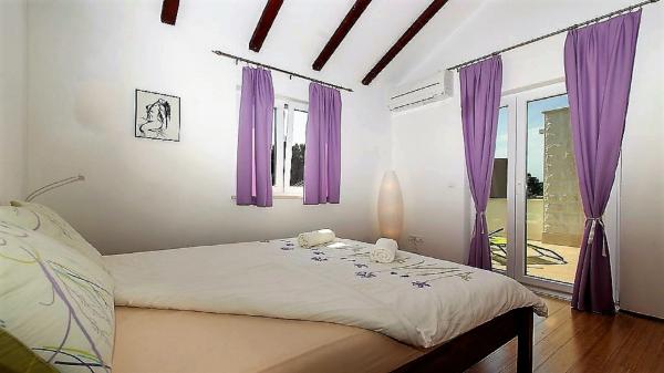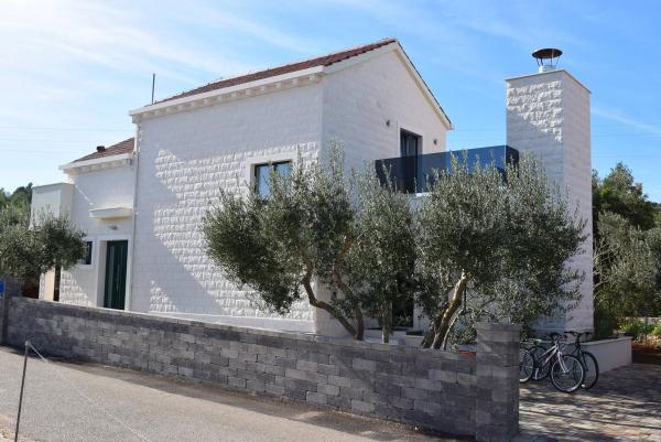 Novozgrajena hiša v neposredni bližini morja (zaliv Račišče, Lumbarda). Hiša je zgrajena iz najkakovostnejših naravnih materialov (kamen, les, keramika) in opremljena s sodobno tehnologijo (solarni sistem za pripravo tople vode, vrhunske inverterske klimatske naprave v vseh prostorih), tako da je bivanje v njej prijetno tudi med najbolj vroči dnevi. Obdan je s stoletnimi oljkami, ki dajejo prostoru posebno vzdušje in čar. Hiša je sestavljena iz pritličja z odprto dnevno sobo, kuhinjo in prostorno jedilnico z odprtim kaminom (žar), spalnico z zakonsko posteljo in kopalnico. Pritličje gleda na vrt in teraso s stropom iz tropskega lesa in jacuzzijem, tako da prostor zagotavlja zasebnost in sprostitev. V prvem nadstropju je velika spalnica z zakonsko posteljo za dve osebi in lastno veliko teraso s pogledom na morje in Pelješac. Z galerije se odpre razkošna kopalnica z veliko kadjo in balkonom. ODDAM CELOTNO VILO, BREZ DRUGIH GOSTOV