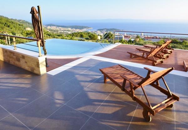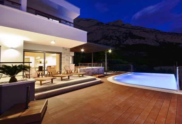 Villa BLUE VIEW, SPLIT - Število oseb: 8 - Spalnice: 4 - Kopalnice: 5 - Bazen Od € 355 / noč Dobrodošli na Villa Blue View! Nahaja se na mirni dvignjenem položaju na pobočju gorskem pobočju v bližini prodnate plaže v Makarski, očarljivo mestece na območju Splita, ta zasebna luksuzna vila za najem z neskončno bazenu je odlična izbira za vaše poletne počitnice na Hrvaškem. Vila ima lep pogled na morje, s pogledom na celotno Makarska in otok Brač nad modrem Jadranskem morju. Vila je popolnoma novo in moderno zasnovane hiše, kot tudi ena izmed najlepših hrvaških luksuznih vil na srednji Dalmaciji v Makarski. S prostorno 4 spalnice in 5 kopalnice, Villa Blue View je vaš razkošje poletni dom in udobno namestitev za 8 oseb, kar je idealno za družine z otroki in za manjše skupine. Spletna www.croatianmediterraneanvillas.com