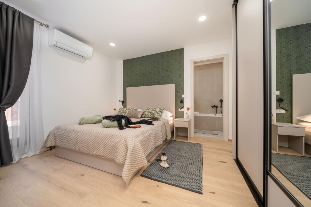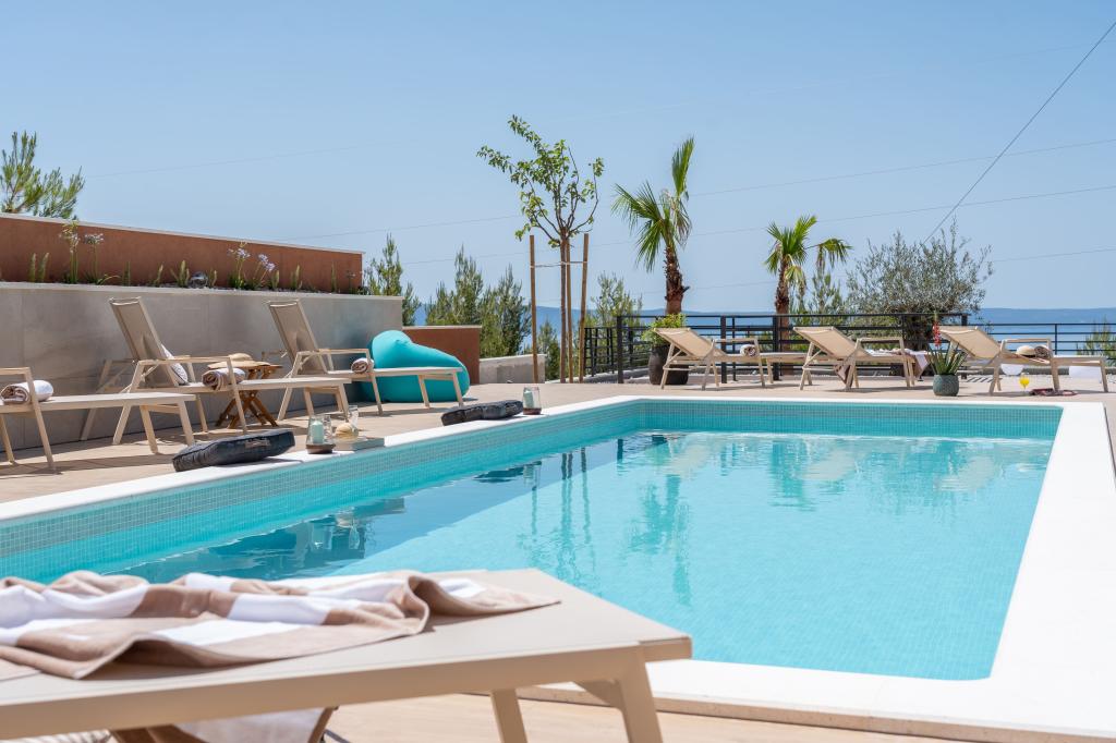 Moderna vila s spektakularnim panoramskim razgledom na azurno morje in velikansko goro Biokovo - prava luksuzna oaza za družine ali skupine do 8 srečnežev! Uživajte v zasebnem bazenu za osvežilno kopanje, žaru za nepozabne večere in prostornem zunanjem salonu, ki je kot nalašč za sprostitev, romantične trenutke ali vesele družinske večerje pod zvezdami. Vaše sanje v Dalmaciji vas čakajo!