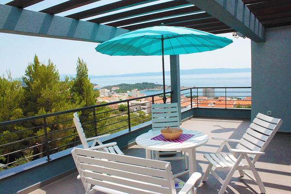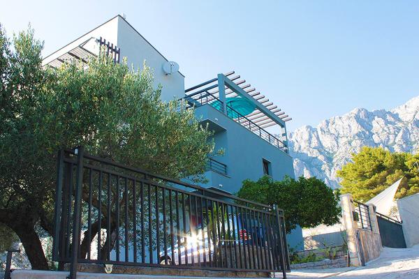Villa v oljčnem nasadu nad Makarsko z velikim bazenom (8 x 4 m). To ni tipična hiša za najem, vendar počitnice doma velike družine, katere vsak del posebej urejeni v skladu z željami in potrebami tisti del družine, ki se uporablja prostor. Hiša je razdeljena na tri ločene enote - dvonadstropna apartma, studio in mansarda stanovanje z veliko teraso s čudovitim pogledom na morje in otoke na jugu in na pobočju gore na severu. Vsaka enota je v celoti opremljena drugače, in cela hiša je opremljena s 5 kopalnic, 3 kuhinje, 6 spalnic, dve dnevni sobi. Obdan z oljko, v katerem je terasa, žar območje. Skratka, pravi kraj za sprostitev in zabavo.