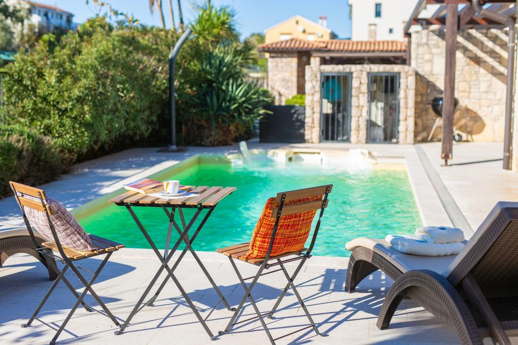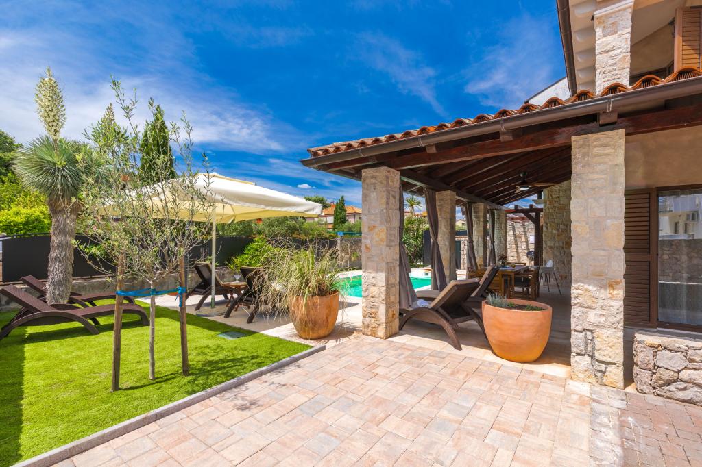 Razkošna vila Bernarda se nahaja v Poratu blizu Malinske. Sprejme lahko 6-7 oseb in ima tri spalnice ter dve kopalnici, razporejene v dveh nadstropjih. V pritličju se nahaja dnevna soba z raztegljivim kavčem za eno osebo, kuhinja z jedilnico, shramba in stranišče. V prvem nadstropju so tri dvoposteljne spalnice, dve kopalnici s tušem in dodatno stranišče. V prostornem zunanjem prostoru se nahaja zasebni ogrevan bazen, pokrita terasa, prostor za žar, zunanji tuš in veliko prostora za uživanje! Parkirno mesto je zagotovljeno.
