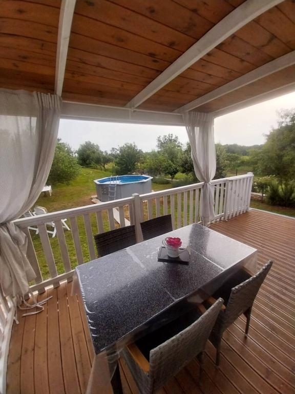 Predstavljajte si, da se prebujate ob sončnih žarkih in petju ptic. Prvo kavo ali čaj popijete na terasi v čudoviti zeleni oazi s pogledom na oljčni nasad in vse to v zasebnosti 1800 m2 velike ograjene parcele. Ta majhna hiša ima 2 spalnici, kuhinjo z jedilnico, kopalnico in stranišče. Opremljen je z vsem, da bo vaš dopust kar se da prijeten. Nahaja se v majhni mirni vasici 10 minut stran od čudovitega starodavnega mesta Pula, 5 minut od letališča in 15 minut od lokalnih plaž. V popoldanskih urah po izletu lahko uživate v pripravi plinskega žara, medtem ko se vaši najdražji osvežijo v malem bazenu ali igrajo badminton. Za aktivne goste je na voljo več kolesarskih poti skozi naravo in ob morju ali več pohodniških poti v neposredni bližini, med katerimi izstopa najdaljša Južna Istra Camino. Vaš ljubljenček je dobrodošel kot vi. Veselimo se vašega prihoda v našo Zeleno oazo.