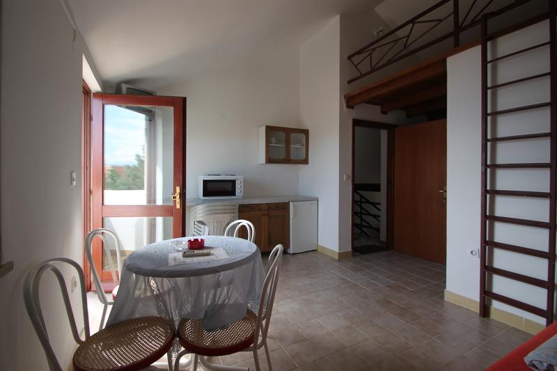 Turistična taksa je vključena v ceno.Na dvorišču je velika, delno pokrita terasa, namizni tenis, parkirišče (avtobusni fitnes), bazen z zunanjim tušem, velik žar. Hiša ima veliko popolnoma opremljeno kuhinjo (4 kuhalne plošče 2 plina, velik hladilnik in delovna plošča. Vsako stanovanje ima klimatsko napravo.