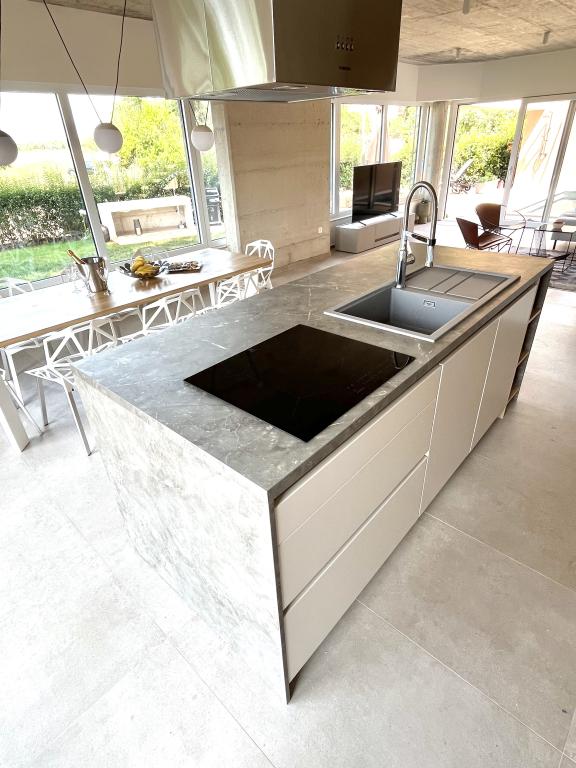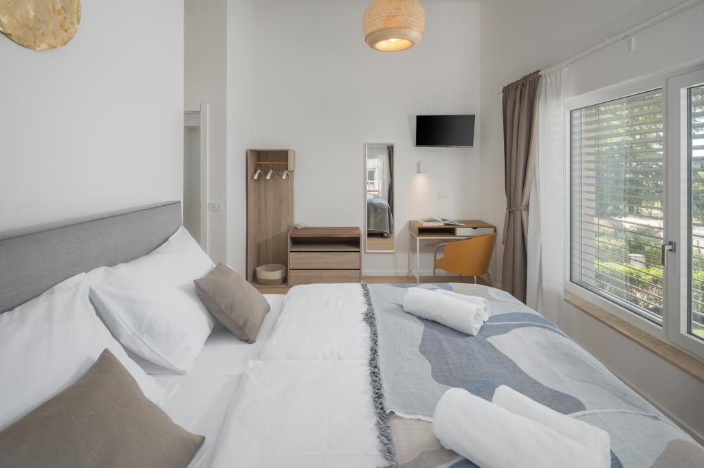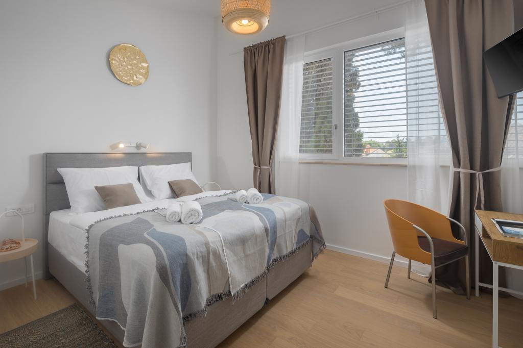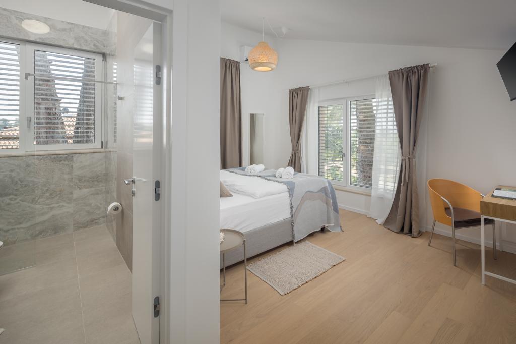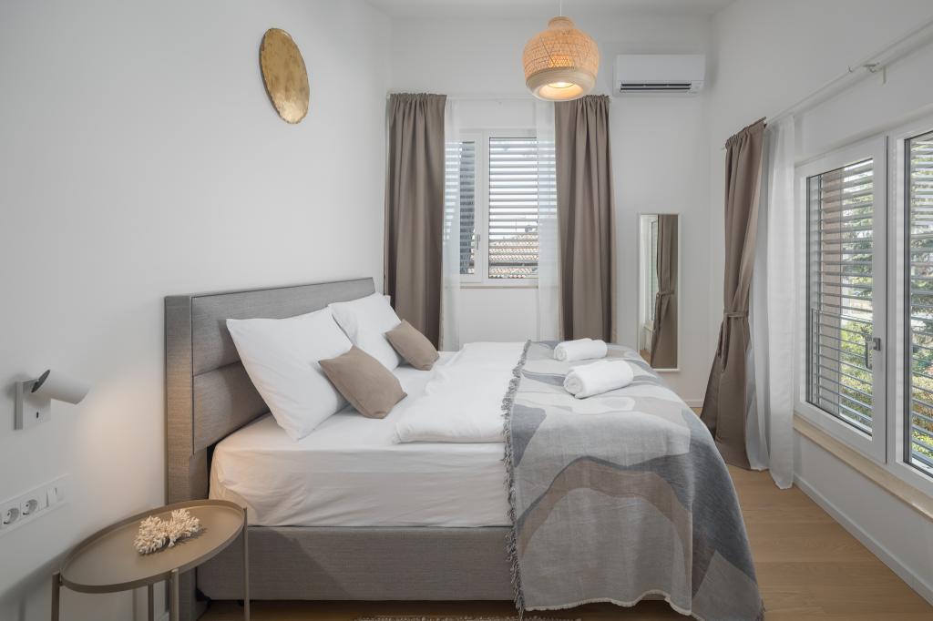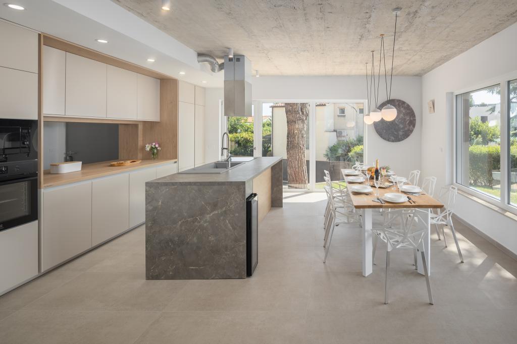 Vaše novo edinstveno mesto za vaše počitnice v naši popolnoma novi Design Luxury Villa Valdora. Hiša se nahaja v očarljivem istrskem mestu Novigrad, 200 metrov od plaže in 15 minut hoje od centra. Z odlično lokacijo, pogledom na morje, starimi borovci na dvorišču in ogromno teraso z zasebnim ogrevanim bazenom, lahko goste pričakajo 3 udobne spalnice z zakonskimi posteljami, vsaka s svojo kopalnico in klimatsko napravo. Hiša ponuja veliko dnevno sobo z naravno svetlobo in popolnoma opremljeno kuhinjo z veliko mizo za 8 oseb. Ležalniki so ob bazenu, kjer se lahko sončite na terasi in uživate v luksuznih in sproščujočih počitnicah. Hišni ljubljenčki dovoljeni na zahtevo Minimalno bivanje 7 noči