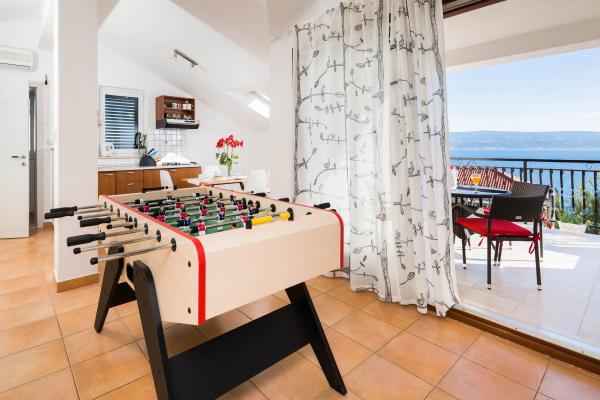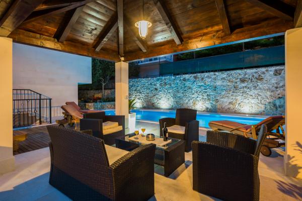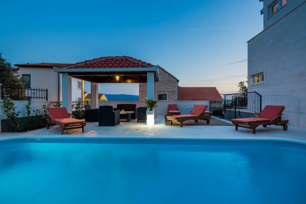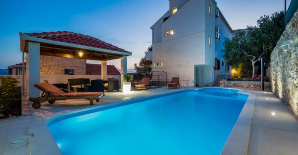 Popolnoma opremljeni in moderno vila obnovljena leta 2015. Ta udobna hiša z bazenom se nahaja v lepi, v Duce. V pritličju ima prostorno dnevno sobo s sobo za zabavo, namizni nogomet, pikado in biljard, medtem ko so v zgornjih nadstropjih spalnice s kopalnico in dnevne sobe. Vse terase imajo pogled na morje. Zunanji bazen je velik 32 m2 s teraso za sončenje, s kakovostnimi ležalniki in gazebo s prostorom za sedenje. V dvorišču žar in otroško igrišče. Tam je parkirišče za 5 avtomobilov. V bližini vile je naravna plaža, idealna za družinske počitnice, restavracije, trgovine in kavarne.