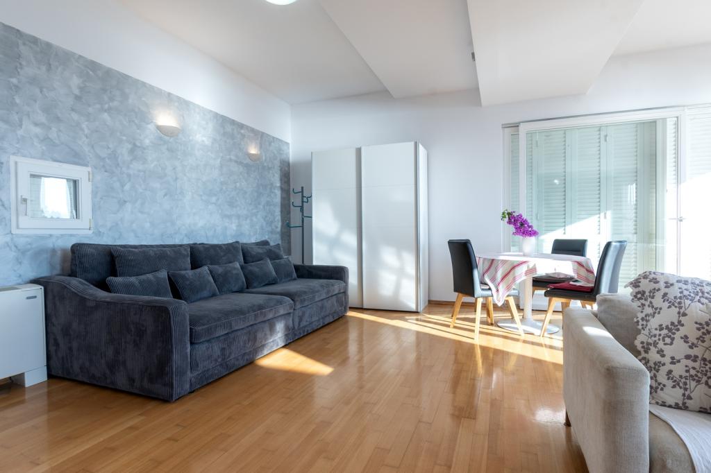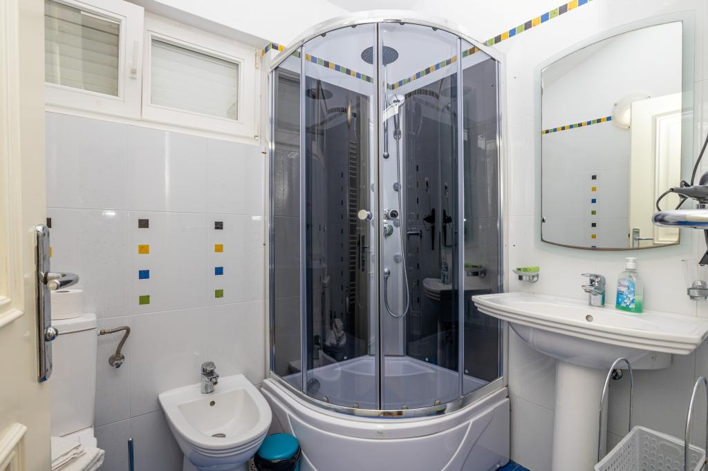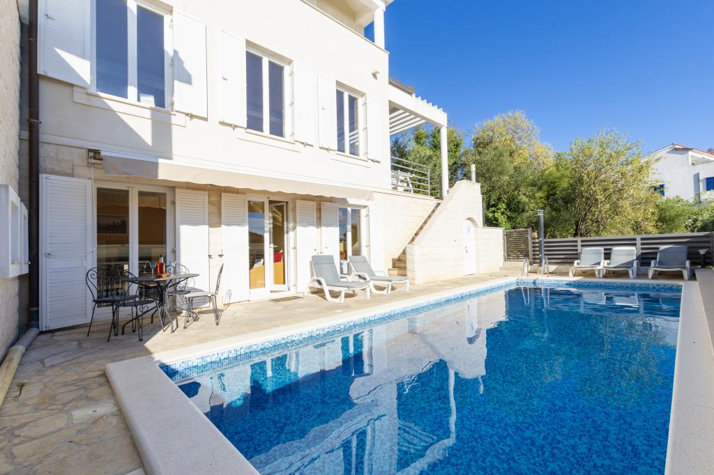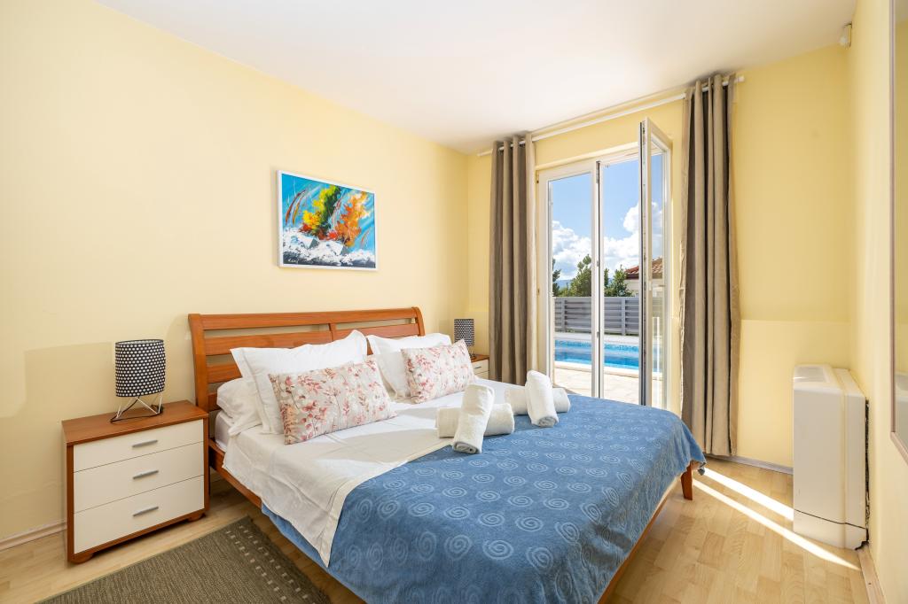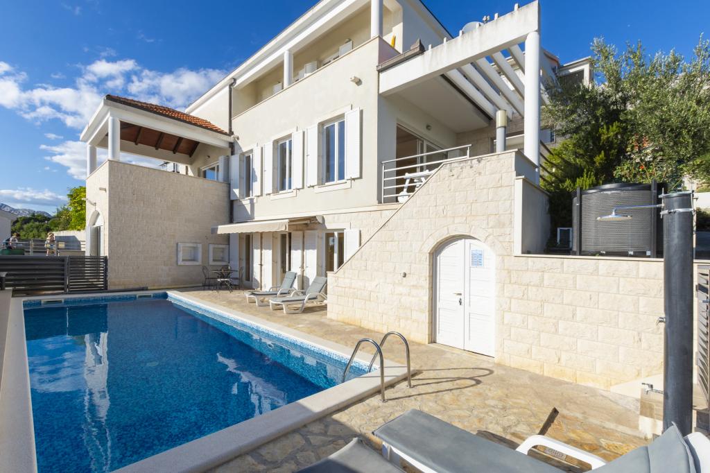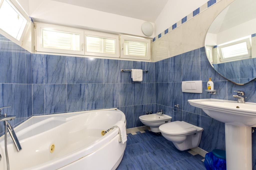 Zelo dobro opremljena vila z bazenom in jacuzzijem. Dobro opremljena kuhinja v dnevni sobi v prvem nadstropju: dva velika hladilnika, krožniki, kozarci, kozarci, mikser, blender, strgalnik, res ni manjkalo ničesar. Velika terasa s pogledom na morje, kjer se lahko udobno namestite zvečer. Dve kopalnici zgoraj, WC v prvem nadstropju in še ena kopalnica v pritličju je velik plus za veliko število popotnikov. Lepe, klimatske plaže v bližini. Do trgovine približno 1 km, do restavracije približno 1 km ali 2 km. Do Omiśa hoje v čudoviti okolici približno 4 km. Ena soba brez okna, za katero nismo ravno vedeli, dobili smo slabo posteljo, ampak mislim, da bo lastnik razmišljal o zamenjavi. Na splošno je bila celotna skupina zelo zadovoljna z bivanjem in iskreno priporočamo ta sedež.