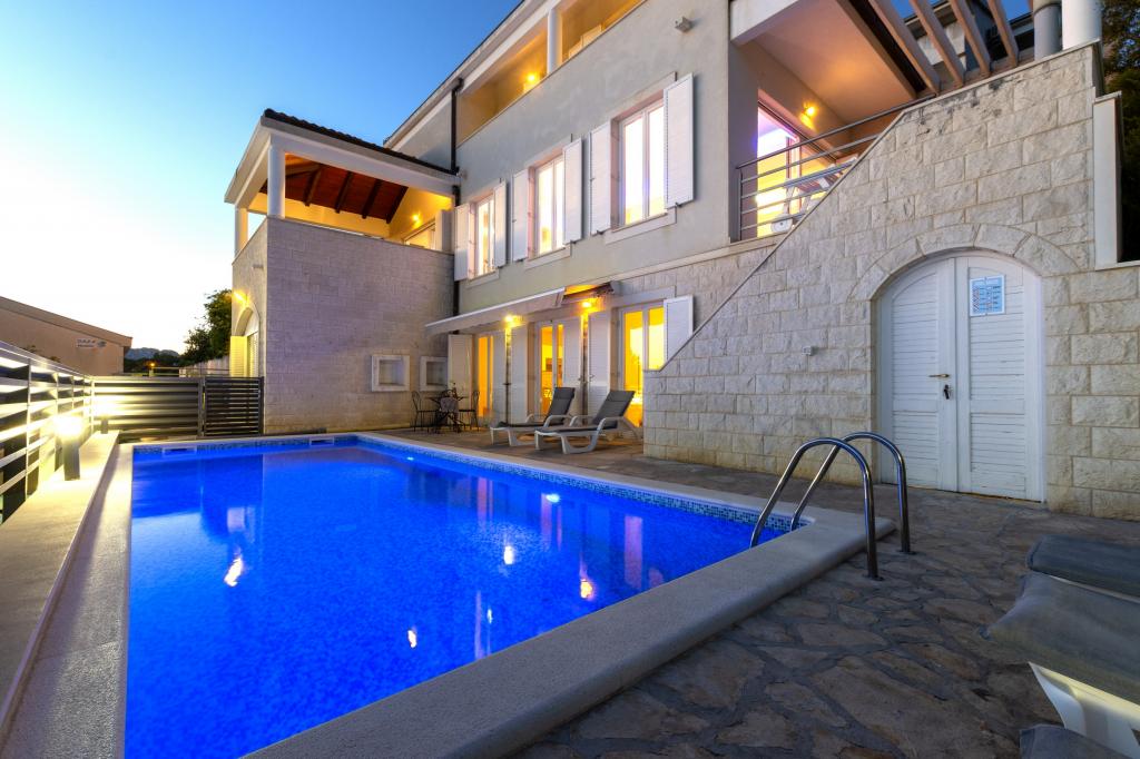 Čudovita vila na odlični lokaciji. Vila je 2 km oddaljena od centra Omiša v smeri proti Makarski, blizu mesta Stanići. Nahaja se 300 m. pod glavno cesto, prva linija do plaže in kristalno čistega morja. Vila ima skupno površino 300 m2, v treh etažah, z velikimi terasami. Vila ima sedem dvoposteljnih sob. V pritličju vile, tik ob bazenu, sta dva apartmaja s tremi spalnicami, dnevno sobo in dvema kopalnicama. Soba s savno, biljardom in telovadnico z ogrevano vodo velikosti 9x4 metre. V prvem nadstropju vile je velika dnevna soba z veliko kuhinjo, dve veliki terasi s čudovitim pogledom na morje in park z žarom. V drugem nadstropju so štiri spalnice, dve kopalnici z WC-jem in eno ločeno stranišče v prvem nadstropju vile. Vse sobe imajo balkone s pogledom na plažo, morje in otok Brač. Vila je v celoti klimatizirana in vrhunsko opremljena. Pred vilo so čudovite plaže in kristalno čisto morje. Parkirišče je zagotovljeno tik ob vili.
