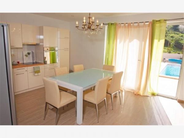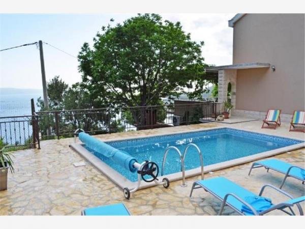 Hiša je moderno in popolnoma opremljeno. Hiša ima bazen, da lahko naši gostje osvežijo in se sprostite v vročih poletnih dneh. Ob bazenu v pokritem delu žar z veliko leseno mizo in klopi. Ima zunanji tuš.Lijepo kraj za druženje. Iz sredi hiše je velika terasa od 100 kvadratnih metrov, ki ponuja čudovit pogled na morje, mesta, gore, otoki, reke Cetine, določitev Forticu. To je res lepa. To je le 20 minut hoje do mesta in z avtom v 5 minutah. V vsakem primeru boste imeli miren in udoben prostor za uživanje s svojo družino in prijatelji, in za 5 minut, da ste v središču mesta, ki vam ponuja vse, kar potrebujete za kakovostne počitnice. Tudi, če želite, da pridejo s svojimi prijatelji z nami in se sprostite malo nihče ne bo motil, ker je hiša sama. Tik pred, imate pokrito garažo. Hiša je v dveh etažah. Dole ima 100 kvadratnih metrov in zgornje nadstropje 50. zgornjem nadstropju ima balkon, od koder je tudi pogled na vse. Vse je na dosegu roke. Objekt je vaša