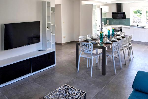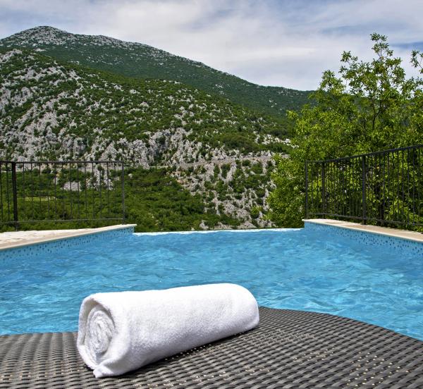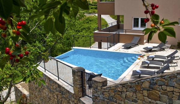 Moderno opremljena vila z overflow bazenom, notranji bazen in spa omamljanjem poglede na potoku in gore. Nahaja se v naselju Smolonje v zaledju Omiša in 15-20 minut od centra mesta. Vila je sestavljena iz pet spalnic in pet kopalnic in ponuja popolno udobje za 10 oseb in dveh otrok. V pritličju je garaža za en avtomobil in soba z namiznim tenisom in WC. Hiša ima parkirišče za dve vozili. V prvem nadstropju prevladuje dnevno sobo z udobno kuhinjo in jedilnico za 12 oseb, in dnevno sobo z LCD TV. Prostorna terasa z mizo in stoli za 4 osebe. Dve spalnici in dve kopalnici. Na drugem nadstropju so tri spalnice in tri kopalnice. Prostor za sprostitev z masažna kad za 4 osebe, talno ogrevanje, tušem in velik balkon. Vse sobe so v celoti klimatiziran. Zunanji del velikega prostora z žarom, mizo in stoli, 6 stolov, prelivni bazen 27m2.