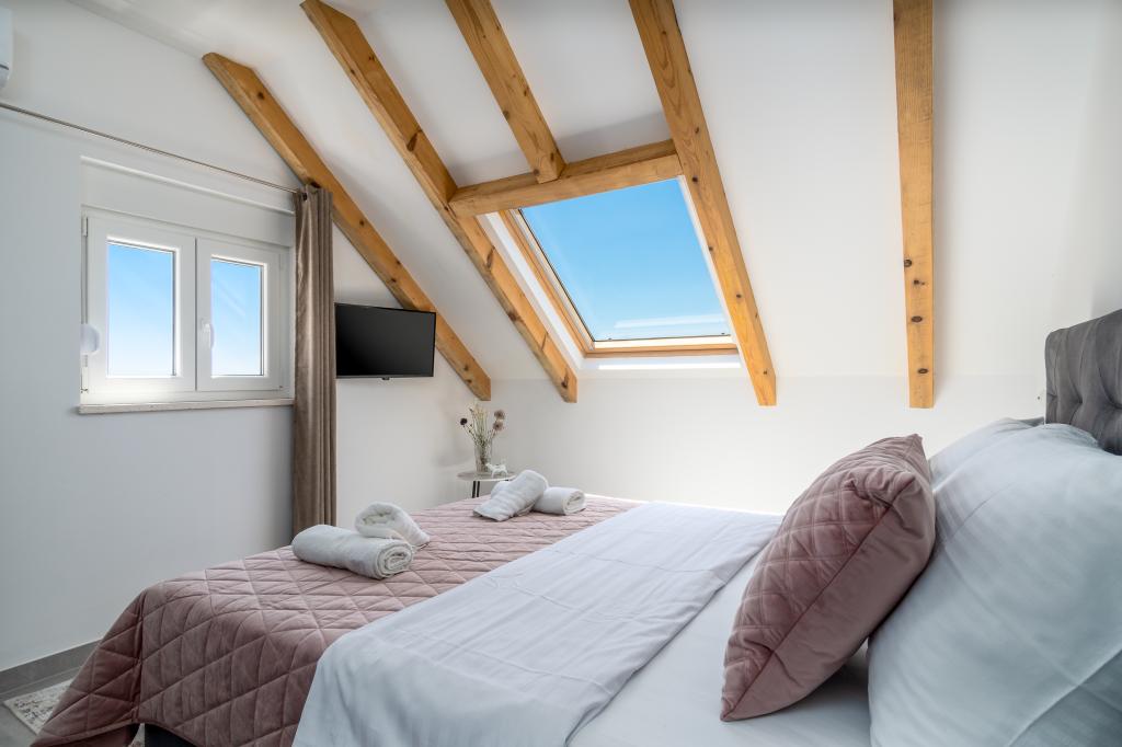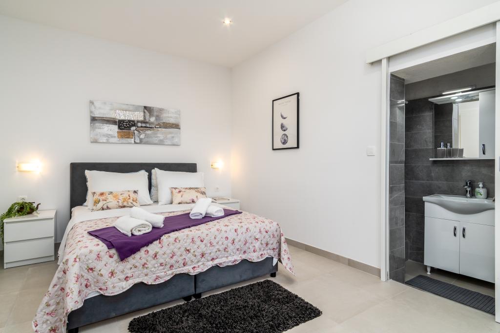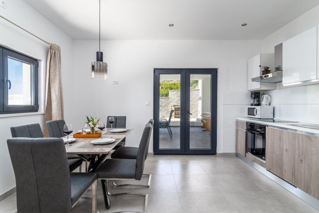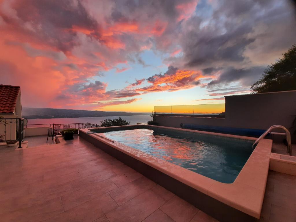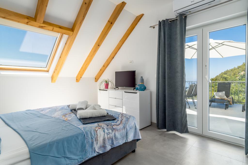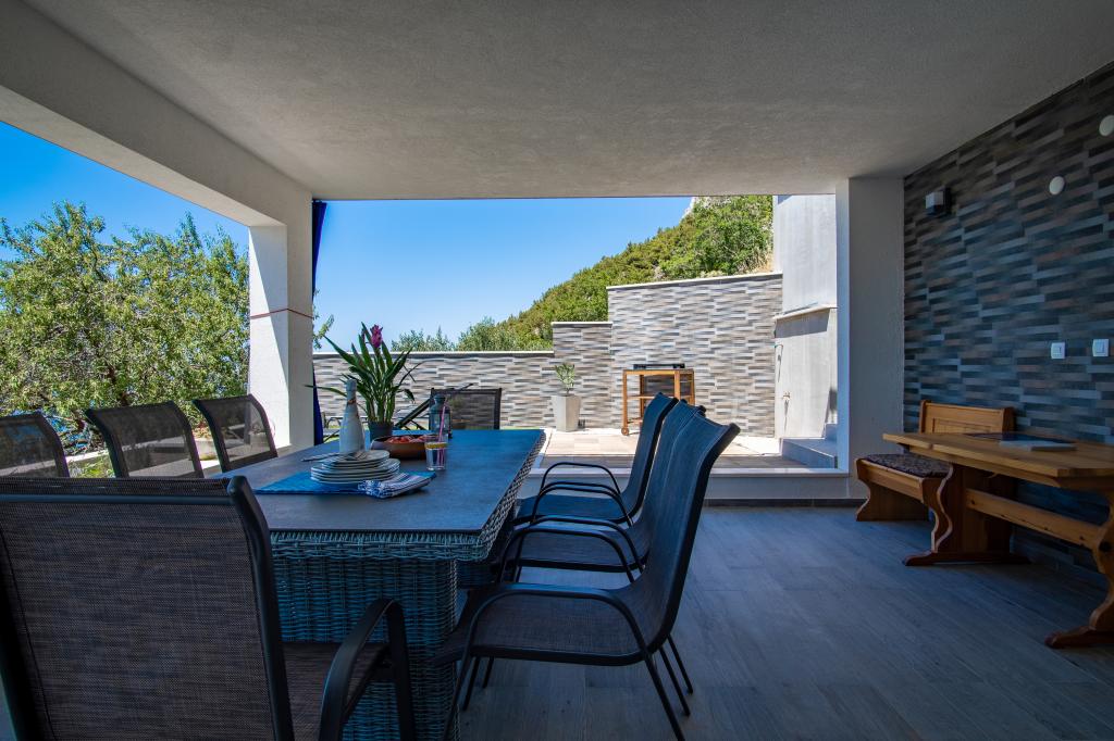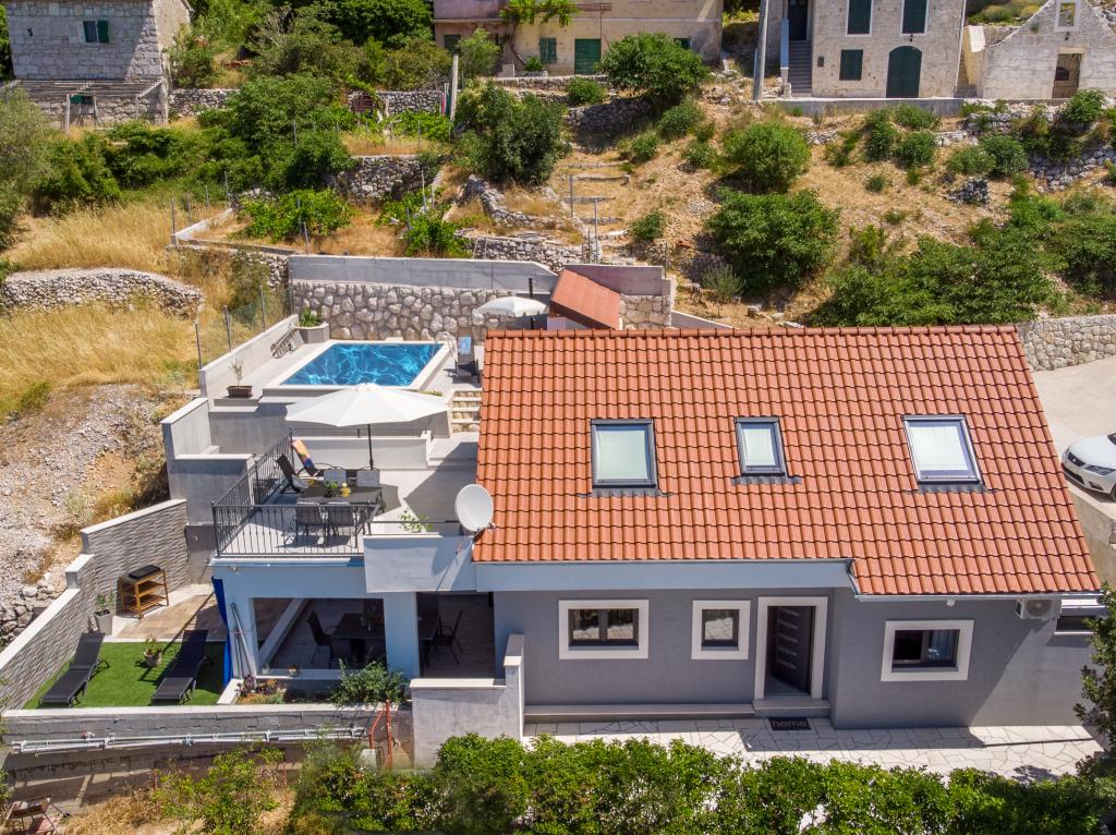 Nova popolnoma opremljena vila z ogrevanim bazenom. s fantastičnim pogledom na Makarsko riviero, otok Brač in Splitski arhipelag, skoraj 200 kilometrov širok razgled. Vila se nahaja 300 m nadmorske višine in se nahaja ob vznožju gore Omiška Dinara 600 m nadmorske višine in 100 0m od morja. Hrib je priljubljeno izletniško mesto številnih turistov. Ceste so označene in na hribu sta 2 planinski hiši za obiskovalce in izvirsko vodo. Vila ima 3 spalnice z zakonsko posteljo, 3 kopalnice, manjšo sobo s kavčem in TV, veliko teraso za sončenje, bazen s teraso, veliko pokrito teraso z vrtno garnituro, zeleno sončno teraso, parkirišče za 2+2 vozila. Nahaja se 5 km od čudovitega mesta Omiš. Vse spalnice imajo pogled na morje. Kuhinja je popolnoma opremljena in nudi vse, kar potrebujete. Vila je obdana z oljčnimi nasadi in vinogradi. Naši gostje bodo lahko posadili eno oljko v našem oljčniku. Naši prijatelji pravijo, da ima ta vila dušo in telo.