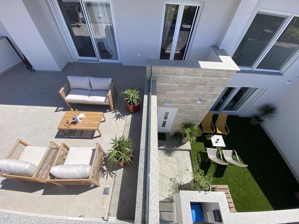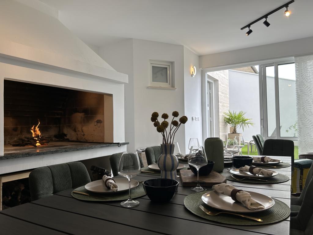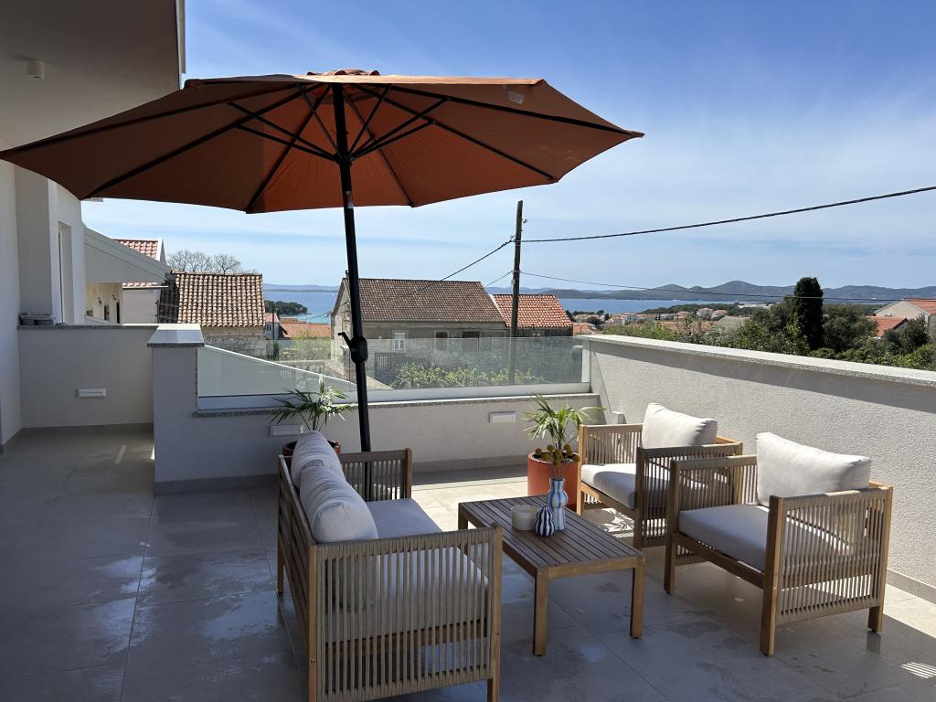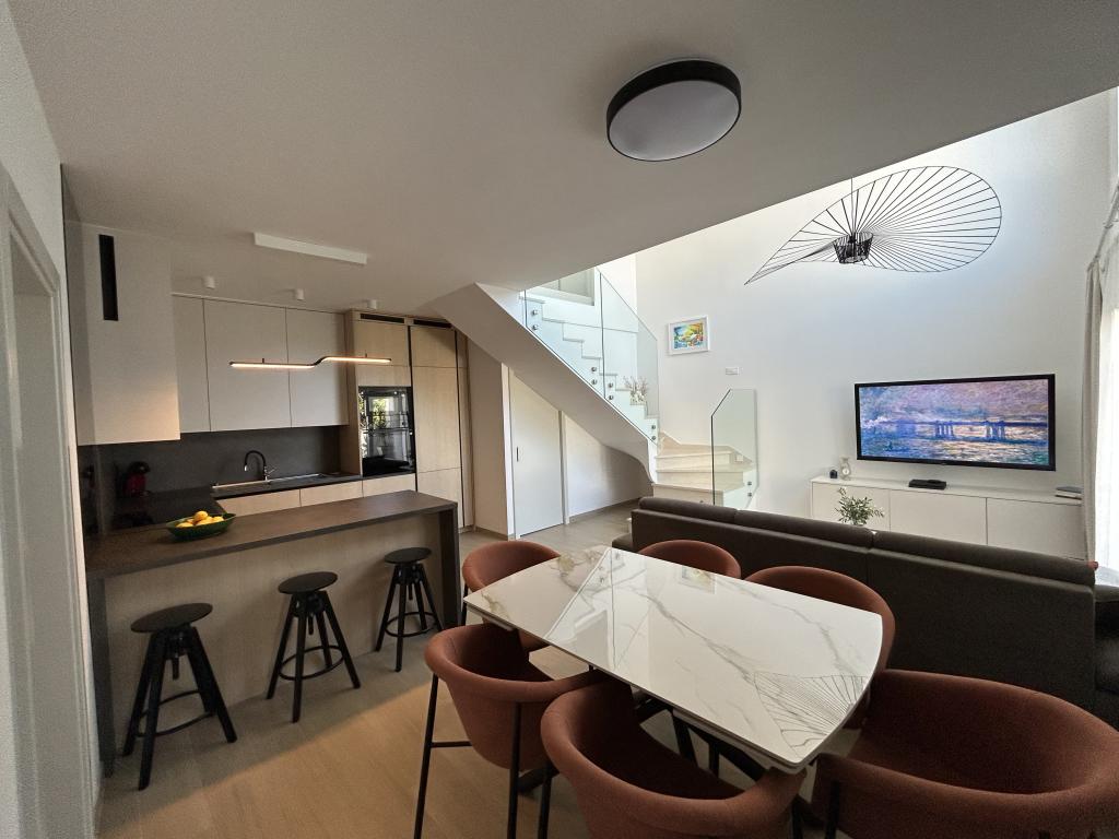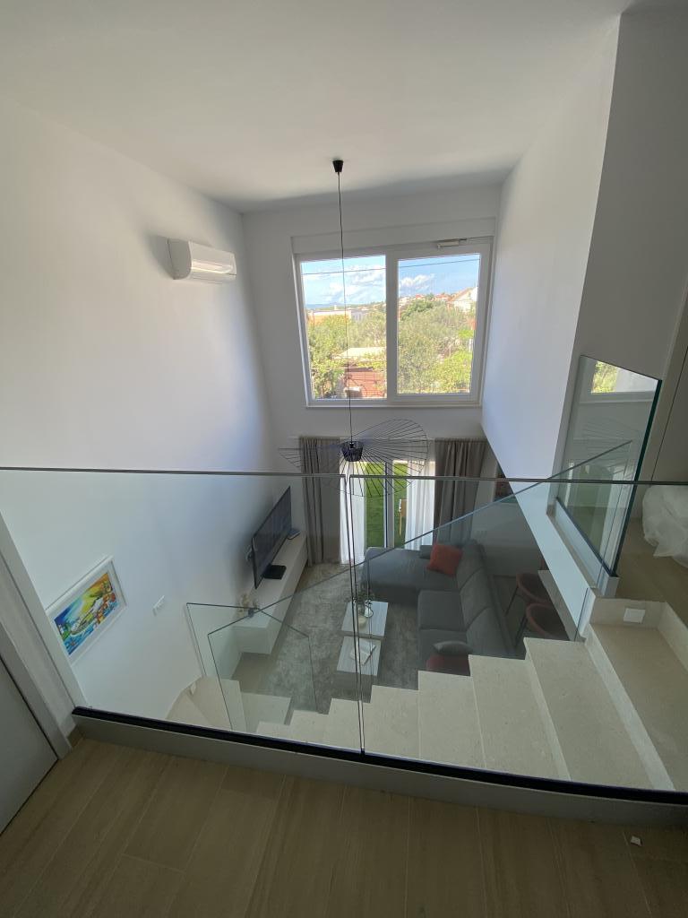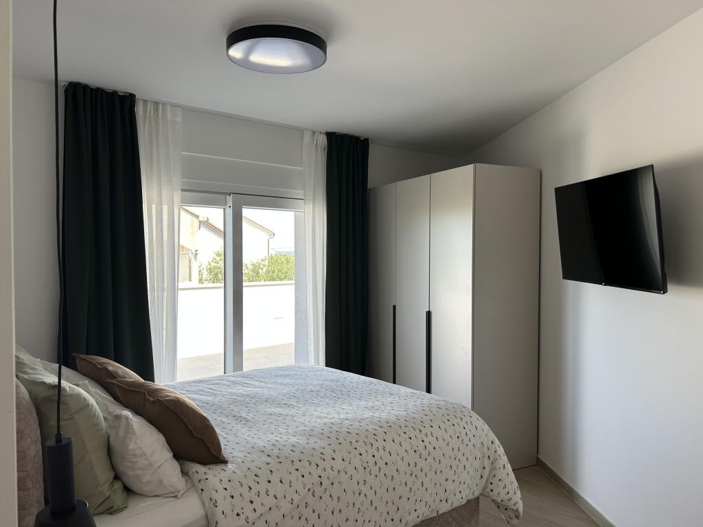Elegantna vila s 3 spalnicami, zasebnim jacuzzijem, prostorno teraso s čarobnim razgledom na morje in pokritim kotičkom za peko na žaru in druženje. Moderno opremljena kuhinja, udobna dnevna soba, hiter Wi-Fi in varovano parkirišče. Idealen kraj za brezskrben in razkošen oddih v mirnem okolju, blizu plaže in lokalnih ugodnosti.