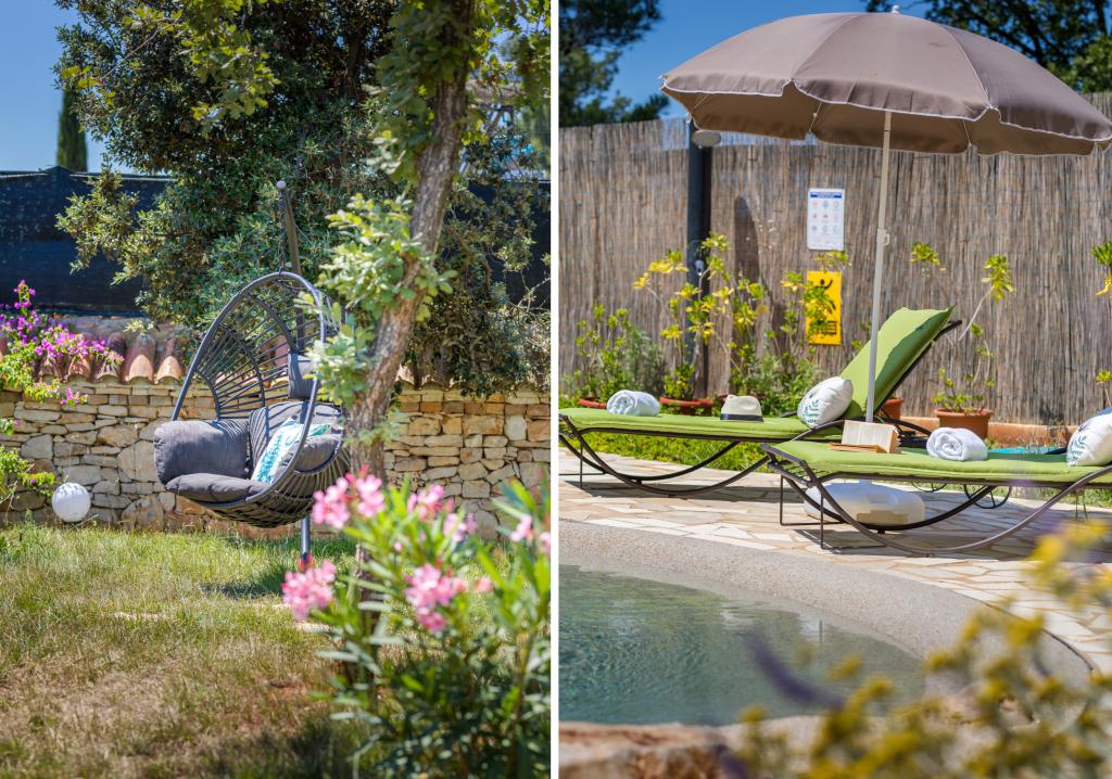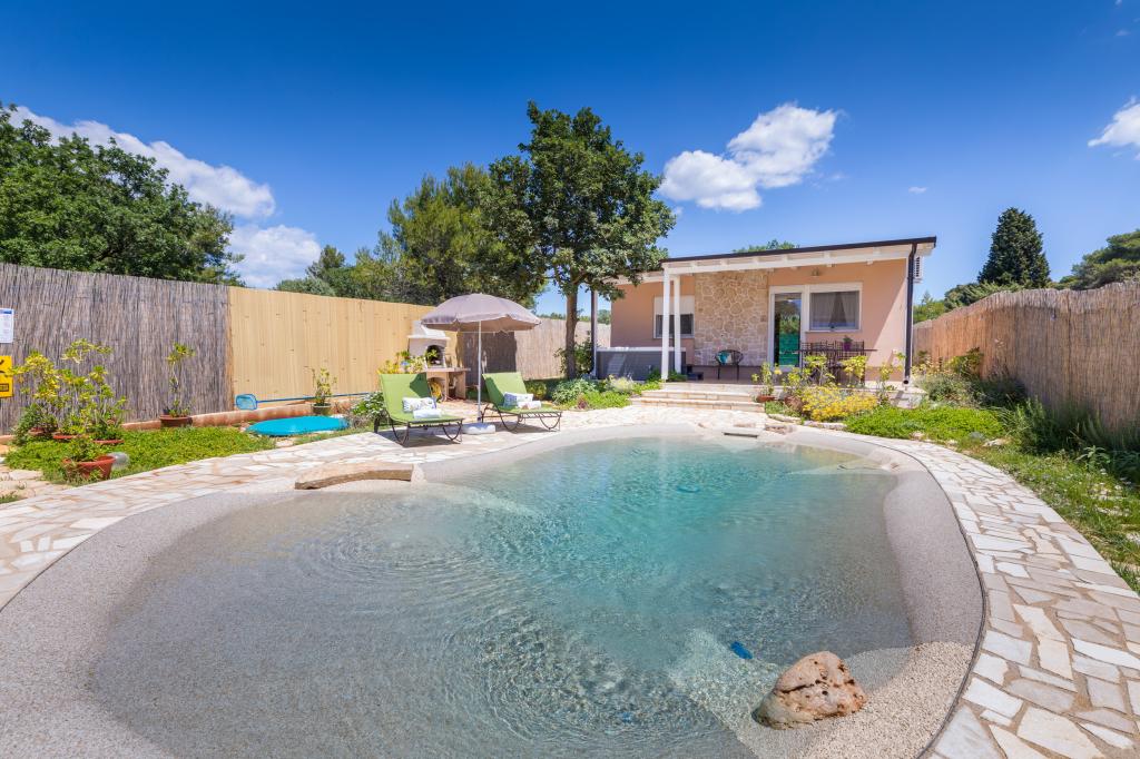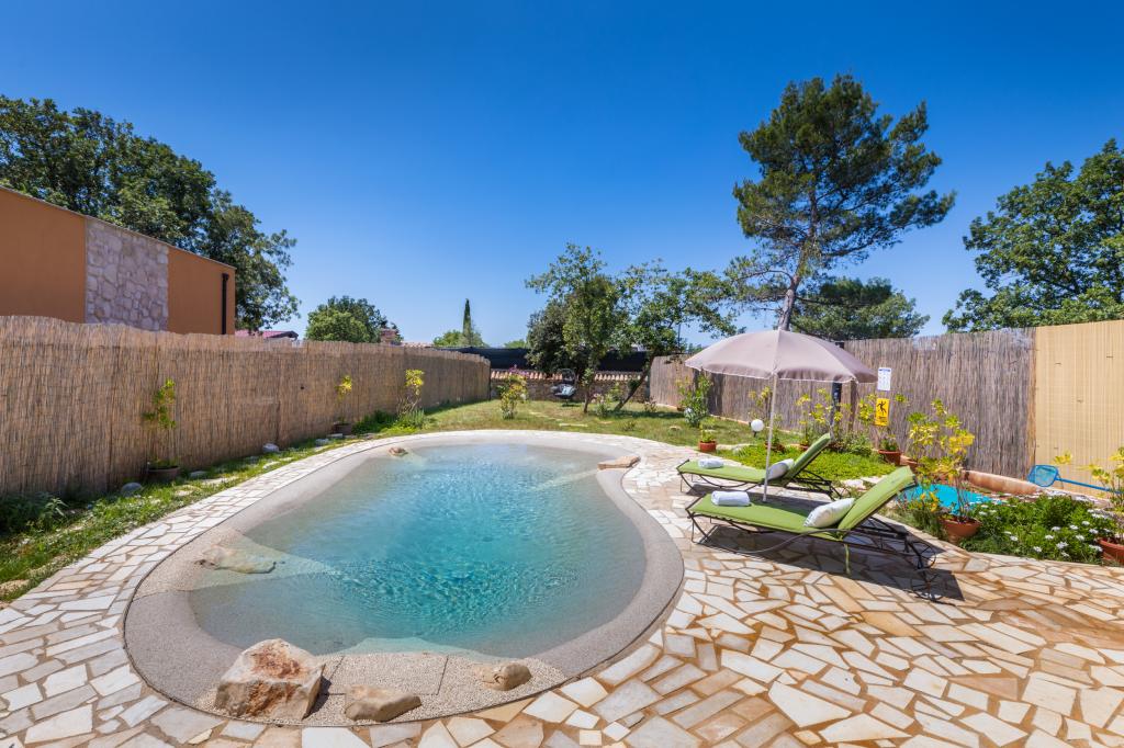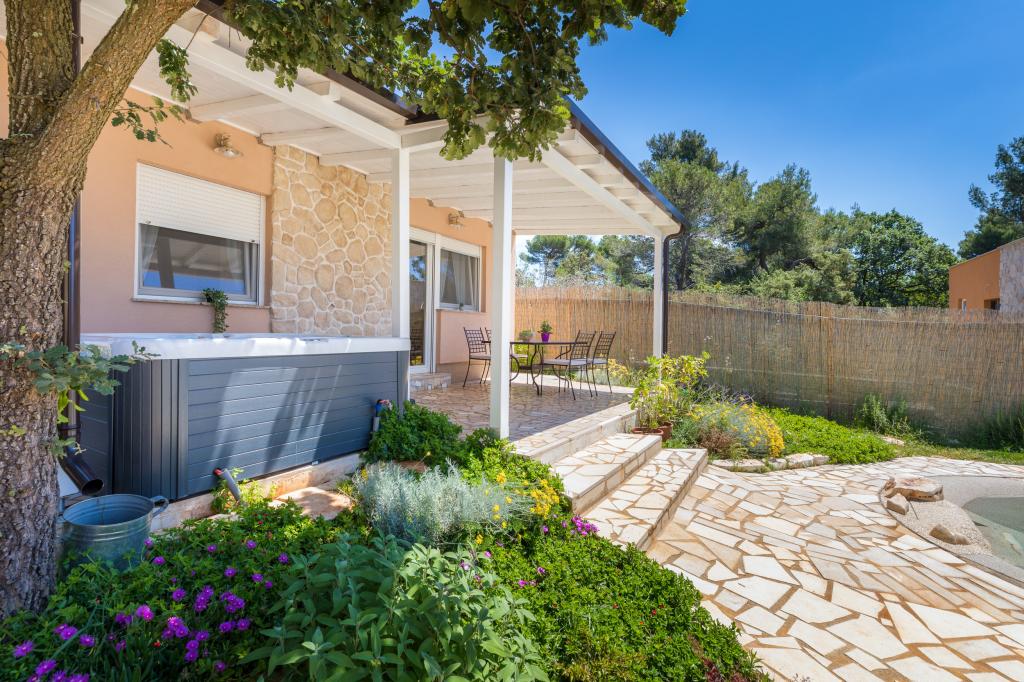 Moderna počitniška hiša se nahaja 200 m od morja in plaže, nasproti nacionalnega parka Brioni in le 15 minut vožnje od Pulja. Obdaja ga dišeči sredozemski vrt z zasebnim Biodesign bazenom in pokrito masažno kadjo. Dvorišče je v celoti ograjeno. Terasa je pokrita in opremljena. Hiša ima kuhinjo z vsemi aparati in pomivalnim strojem, kopalnico, pralni stroj, spalnico in dnevno sobo s satelitskim TV sprejemnikom in udobnim kavčem, ki se po potrebi lahko spremeni v zakonsko posteljo 180x190. Hiša je idealna za romantično bivanje v dvoje, lahko pa sprejme do štiri osebe. Hišni ljubljenčki so dobrodošli.