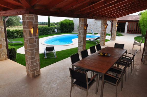 Idealen kraj za vse, ki želijo pobegniti od prometnih zamaškov in ob vsakem letnem času, s prijatelji in družino, uživajte v lepoti in podnebja istrske regije. Na izjemni lokaciji, ob robu vasi Labinci / Santa Domenica, da je to lepa Villa. Zgrajena je bila leta 2008, v tradicionalnem istrskem slogu. Očarljiv pogled na morje, oljčnih nasadov in vinogradov, boste lahko uživali do 11 ljudi, kar je Homesteads namestitvene zmogljivosti. Moderno opremljena vila je obdana z lepim vrtom, pred njo pa je zunanji bazen in dobro opremljeno kuhinjo vrt. V času vašega bivanja lahko uživate prednosti pravega dobrega počutja, ki zagotavlja eno izmed kopalnic je opremljena z jacuzzi kadjo, medtem ko je druga obogatena s savno in turško kopeljo. Je prostorna, velika jedilnica za 25 oseb, ki lahko služi tudi kot delovni prostor za poslovna srečanja, kot tudi udobno in sproščujoče dnevna soba s kaminom, ki vabi, da preživite večer.