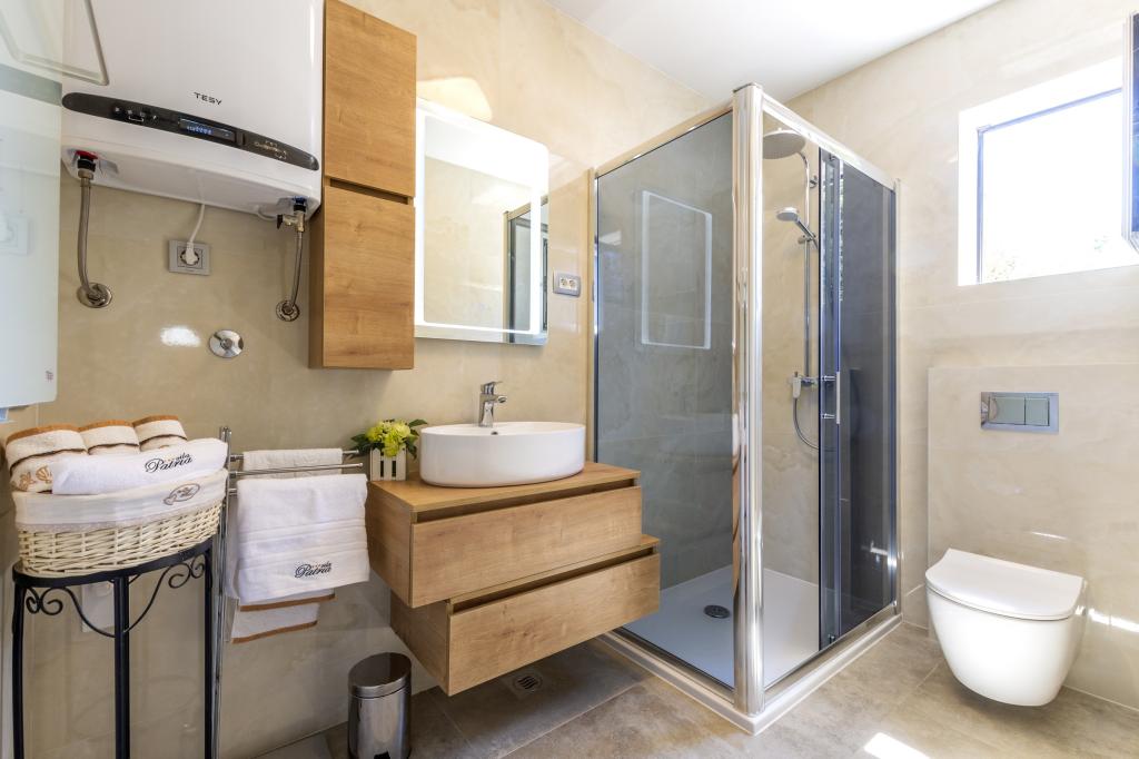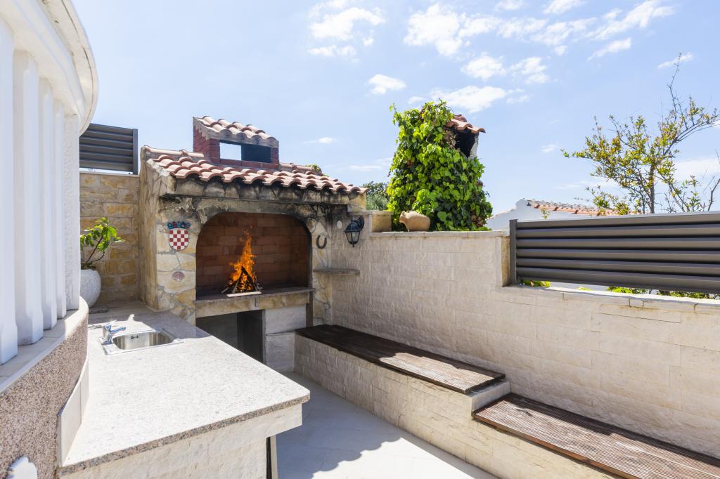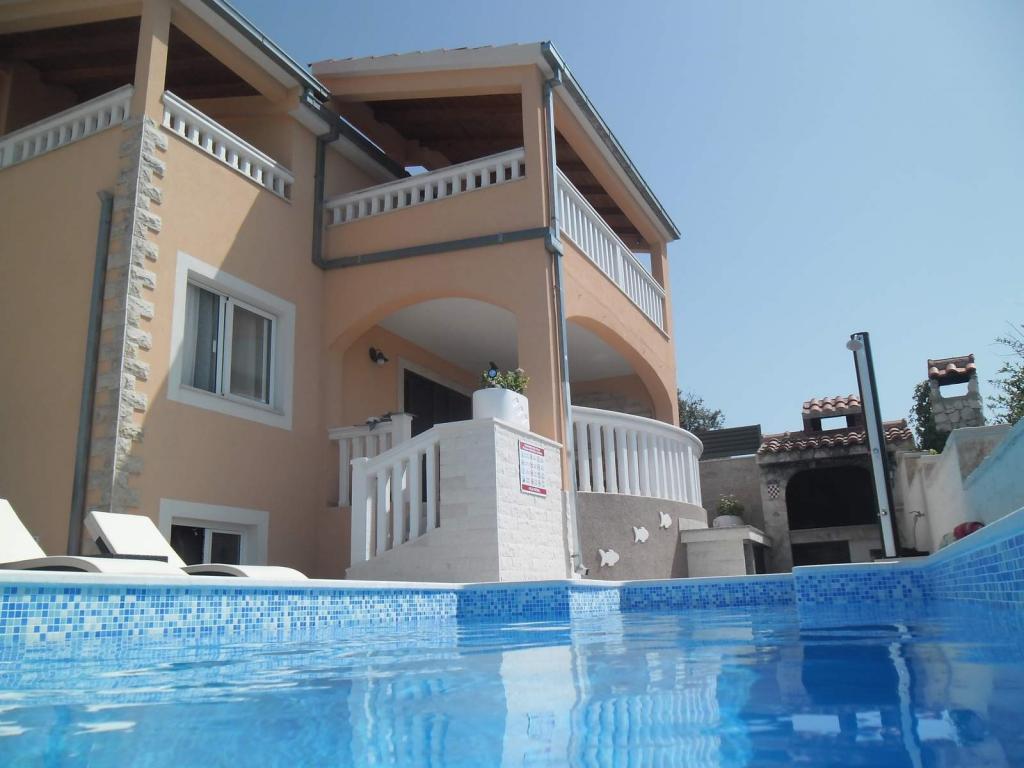 Novo zgrajena počitniška hiša se nahaja na mirni lokaciji, od hrupa in gneče, ki vam daje oazo miru za vaše počitnice s pogledom na kristalno čisto morje. Hiša je sestavljena iz 4 spalnice, 2 kopalnici, kuhinje in dnevne sobe, 2 terase ter balkona s pogledom na jutranji odhod in čarobnega večernega sončnega zahoda. Na dvorišču je ogrevan bazen z masažnimi curki in ležalniki, zunanji tuš in velik žar, ki so samo naši gostje na razpolago in imajo lastno parkirišče.