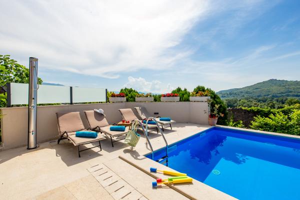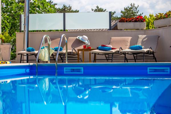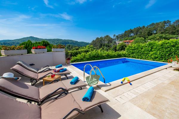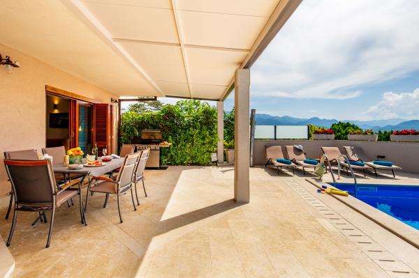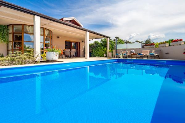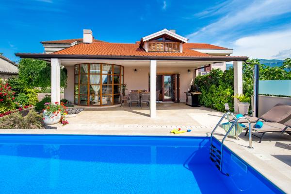 Villa Marijana je čudovita počitniška hiša v pritličju, ki se nahaja v zaledju Reke, na mirni lokaciji v bližini čudovitih turističnih mest Opatija in Crikvenica. Villa Marijana je hiša s prostornim in toplim bazenom 30m2, udobna, kapaciteta za 7 oseb in skupno površino 220 m2. V pritličju je kopalnica, kuhinja, jedilnica, dnevna soba z veliko pokrito teraso (z žarom), lep razgled na bazen in čudovit cvetlični vrt in okoliška narava. Celotno območje na terasi je zelo intimno in udobno. V enodružinski hiši so tri spalnice (z balkonom), kopalnica in ena dodatna soba. Hiša ima tudi veliko garažo in pokrito zunanje parkirišče. V romantičnih poletnih večerih lahko uživate v bogati gastronomski ponudbi, različnih znamenitostih, bogatih dogodkih in koncertih. Naši gostje se veselijo, da se vrnejo in se vrnejo, ker so prepričani, da bo njihov dopust preživel v udobju, lepoti narave in miru.