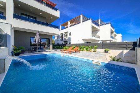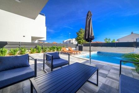 Villa Mira se nahaja v Srimi v Šibensko-kninski županiji. Gostje imajo dostop do terase, zasebnega bazena in brezplačnega brezžičnega interneta. Vila ima 4 spalnice, dnevno sobo in popolnoma opremljeno kuhinjo. Ponuja tudi klimatsko napravo, televizijo in 3 kopalnice s pomivalnim in pralnim strojem. Na voljo so brezplačno parkirišče, oprema za peko na žaru in rekreacijska soba. Vodice so oddaljene 3 km. od vile in Šibenika 12 km. Letališče Zadar je oddaljeno 66 km, NP Krka s čudovitim Skradinskim bukom je 15 km stran.