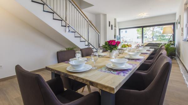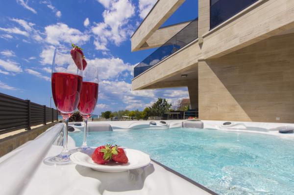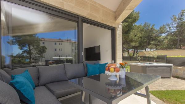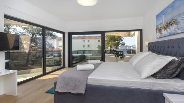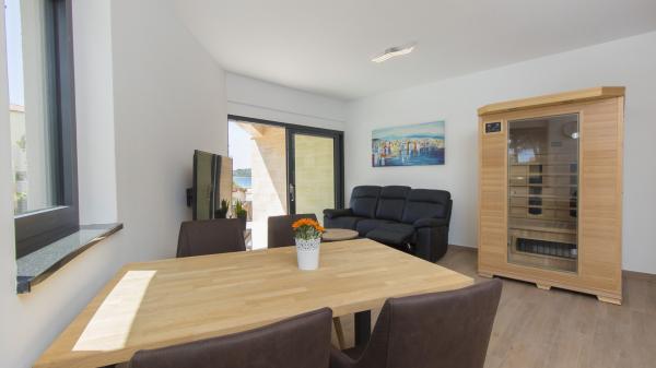 V ceni nastanitve, davek, posteljnina, parkirišče, klima, internet, dobrodošlica, savna, jacuzzi. Možnost najema, e-skuterja, gliserja, masaže .....