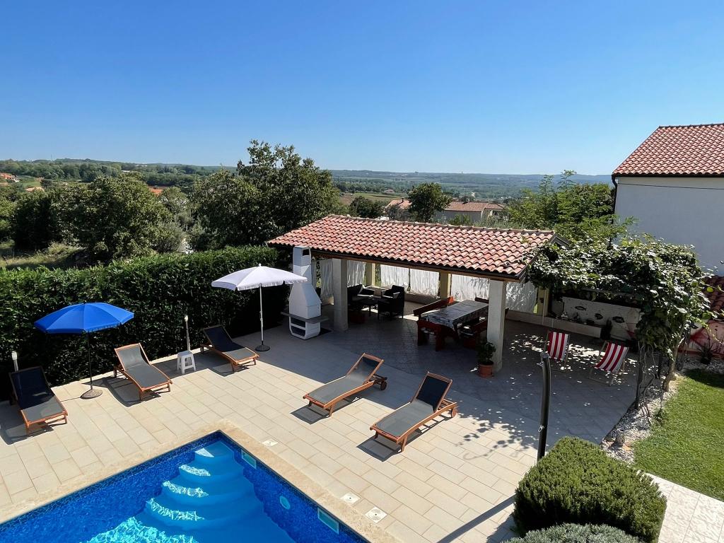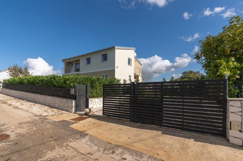 Nahajamo se v mestecu Kaštelir, 10 km od Poreča. Hiša je sestavljena iz dveh ločenih apartmajev, enega v pritličju, drugega v prvem nadstropju, hiša se oddaja kot celota. Vsak apartma je sestavljen iz dnevne sobe, kuhinje, dveh spalnic, vsaka s svojo kopalnico. Vsak apartma ima 3 klimatske naprave, eno v dnevni sobi in eno v vsaki sobi. Apartma je opremljen z vsem potrebnim za prijetno bivanje. Zunaj je otroško igrišče z gugalnicami, trampolinom in mizo za namizni tenis. Dvorišče je popolnoma ograjeno, tako da lahko pripeljete svojega psa, zaračunamo 12 eur na dan za pse. Zunaj imamo tudi bazen 8*4m, ležalnike, senčnike in letno kuhinjo z žarom. Pred apartmajem imamo 6 parkirnih mest, od tega sta 2 pokriti zaradi drugih obveznosti pri nas v juliju in avgustu možna rezervacija samo od nedelje do nedelje, v ostalih mesecih pa je minimalno 5 dni in čas prihoda je lahko katerikoli dan v tednu. Hiša je idealna za 8 oseb, lahko pa sprejme tudi 10 oseb. Za dodatno osebo imamo doplačilo 25 € na osebo.