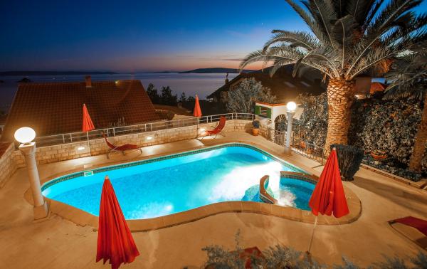 Villa Adriatic GEM - Število oseb: 6 - Spalnice: 3 - Bazen z jacuzzijem - Od € 230 / noč Dobrodošli na Villa Adriatic Gem! Ta očarljiva sredozemska vila z zasebnim bazenom se nahaja v čudovitem vrtu v srednji Dalmaciji v sredozemski ambient 5 km od Trogirja, v bližini Splita, UNESCO dediščine z neverjetno starega mestnega jedra. Vila se nahaja le 80m od morja in kamnite plaže. Adriatic Gem je selfcatering počitniški dom v najem in udobno namestitev za 6 oseb s 3 spalnice in 2 kopalnici s pogledom na otoke Trogir arhipelaga nad modro Jadransko morje. Najbližji restavracije, bari, trgovine in peščena plaža s poletno bar so blizu vili v centu naselja. Ta vila je udoben zasebno počitniški dom na Hrvaškem je idealen za pare, manjše skupine in družine z otroki. Spletna www.croatianmediterraneanvillas.com