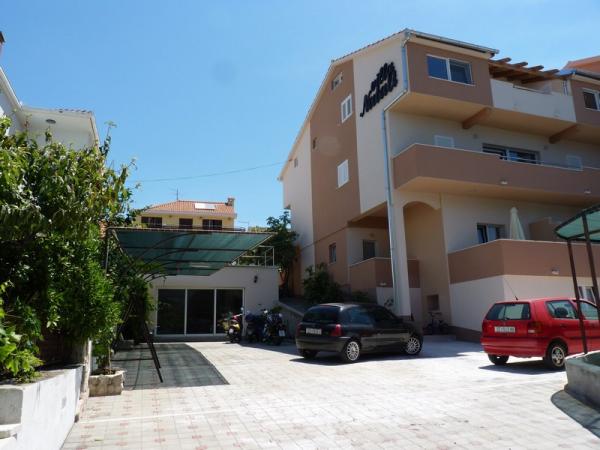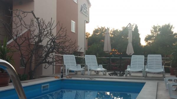 Nova vila (2013) z bazenom 6 x 3 m, teraso za sončenje in žar le 2 km od Trogirja se nahaja v bližini prodnate plaže, ki je njen videz, senca, in otroško igrišče primerna za mlade, starejše, ampak tudi za družine. Sodobni apartmaji vam omogočajo prijetno bivanje. Naš gostitelj bo vsak dan v neposrednem stiku z vami in vam ponuja vse informacije, možno uporabiti svoj čas samo zase. Je veliko stvari, ki jih lahko najamete, različni izleti lahko greš na vas bolj dostopen, saj smo z našimi partnerji, storiti vse, da bo vaše bivanje čim prijetnejše. Za tiste, ki raje tradicionalni del krajine, v katero so prišli tudi zgodovino in umetnost mesta UNESCO z vsemi svojimi znamenitostmi, in vaše brbončice vas lahko preseneti v številnih restavracijah.