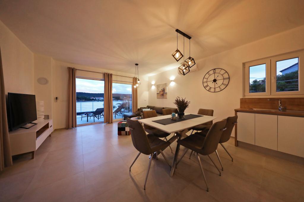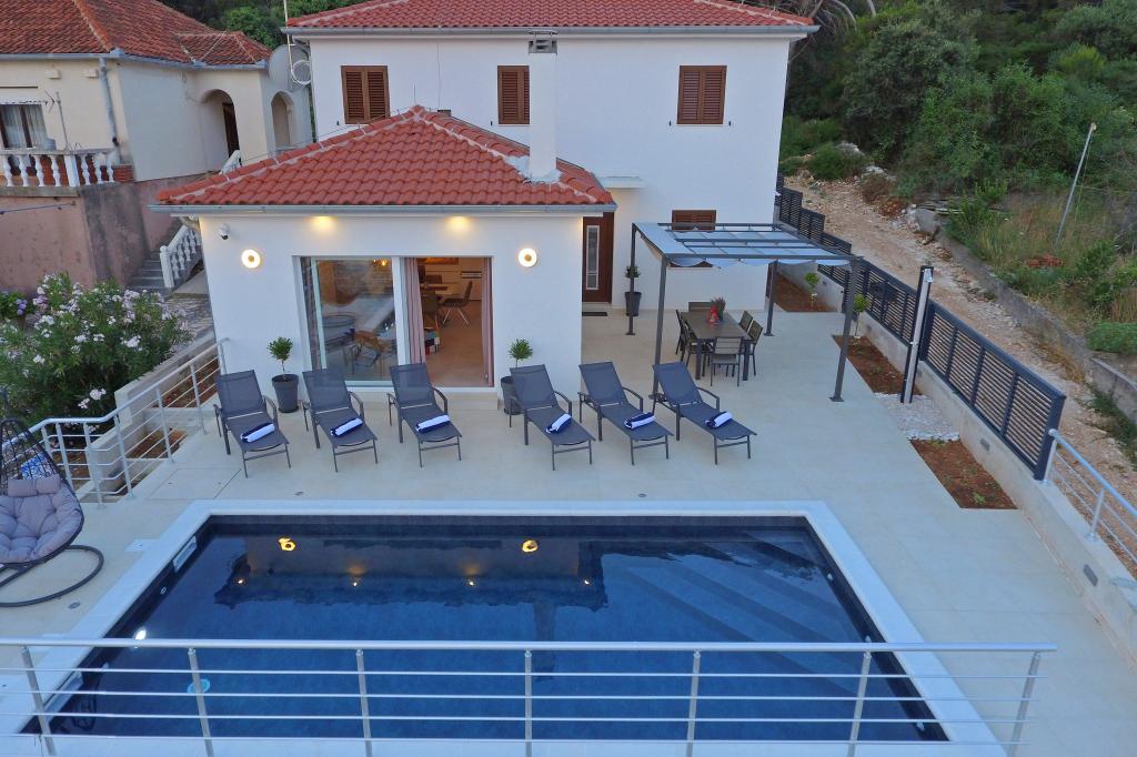 Popolnoma nova, moderna vila z bazenom, ki se nahaja v zahodnem delu Dugega otoka, 3km od plaže Sakarun in 3 km od svetilnika Veli Rat. Bazen meri 6, 8x3, 2m. Zelo udobna vila s tremi spalnicami, tremi kopalnicami, dnevno sobo, kuhinjo, jedilnico, teraso in zunanjim žarom. Popolna posteljnina, kopalne brisače in še posebej za plažo. Privez za čoln do 6 m dolg 20 m od hiše. Za večja plovila je marina od hiše oddaljena 700m. Na voljo je 6 koles, skupaj z 1 SUP-om.
