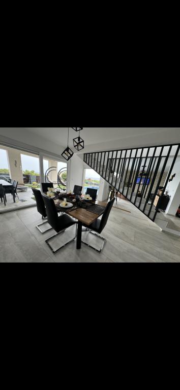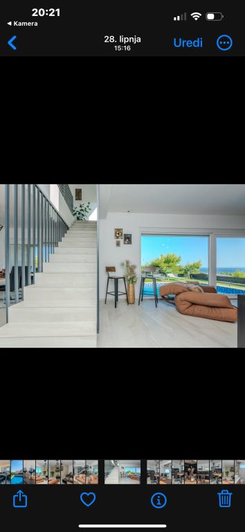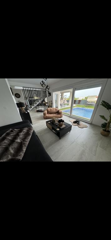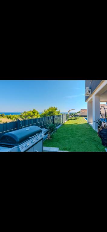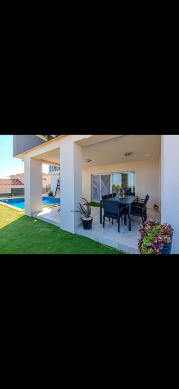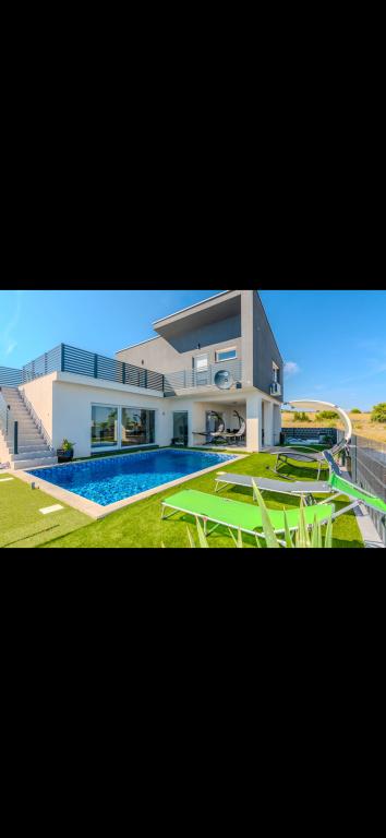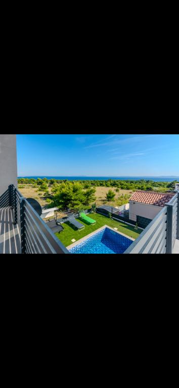 Popolnoma in moderno opremljena vila z bazenom. Pet minut vožnje od centra mesta. Bazen je velik 6 x 4,5 metra. Velika pokrita terasa, ena velika nepokrita terasa. Pogled na morje in prelepi Velebit. Veliko ograjeno parkirišče v bližini vile. Moderni ležalniki.