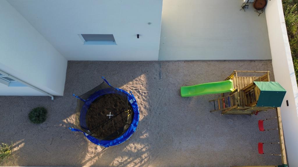 Popolnoma opremljena vila z bazenom, žarom in otroškim igriščem. Nahaja se približno 1 km od centra mesta v mirni soseski.