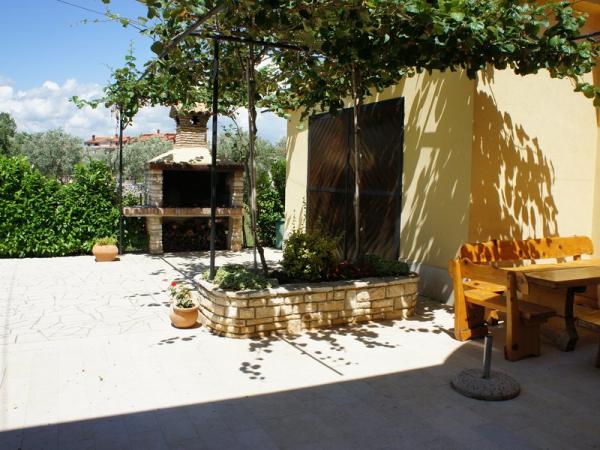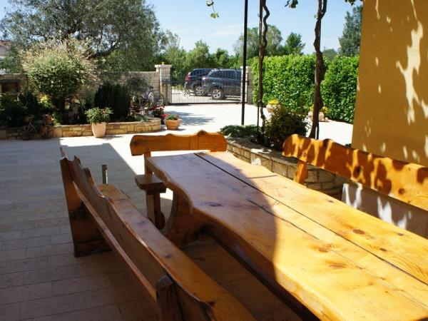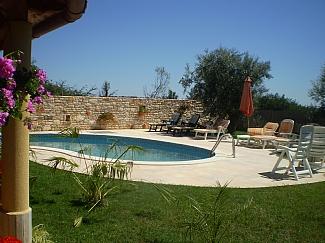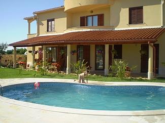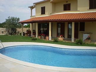 Počitniška hiša z bazenom 32m2, 4 km od morja. Nastanjen na mirni lokaciji, obdana z vinogradi in oljčnimi nasadi. Primeren večja grupu.Kuća ima 9 spalnici (zakonska zasedenosti), dva Galerija spalnico (double), 7 kopalnic. Ena kopalnica ima masažno kad. V prvem nadstropju je velika fitness soba (apravama vadbo, pikado in mizo za nogomet). Primeren za uporabnike invalidskih vozičkov. Pred bazenom je miza za namizni tenis. Na dvorišču je velika klet s kaminom, ki služi gostom za druženje, kot tudi shranjevanje hrane. Klet ima veliko leseno mizo s klopmi, in pred gostilno je tudi velika lesena miza s klopmi. Hiša je v celoti obdana s kamnitimi zidovi. Bazen je 32 m2. Na bazenu ležalniki in senčniki. Hiša je v celoti (klima vključena) klimatizirani. Internet vključeni.