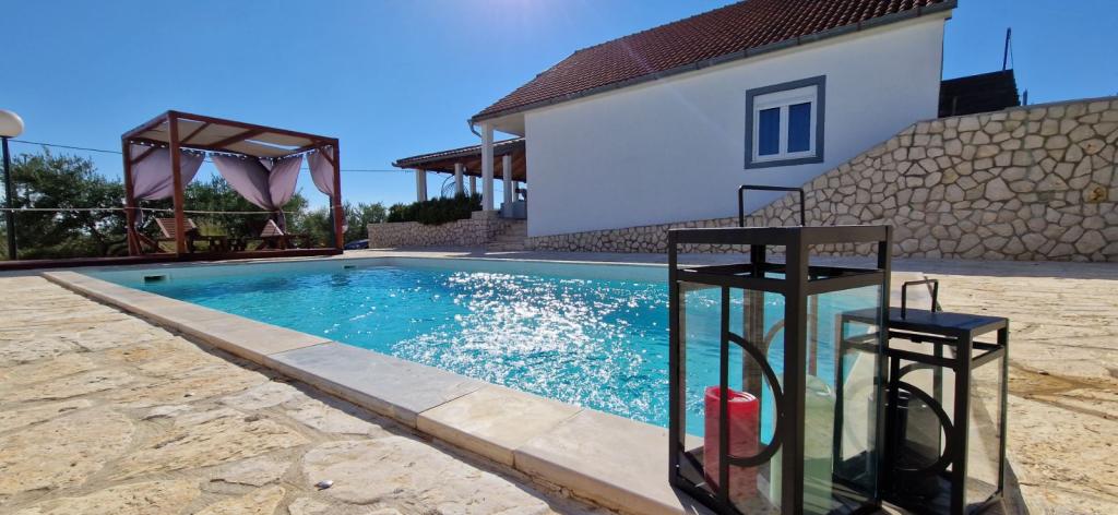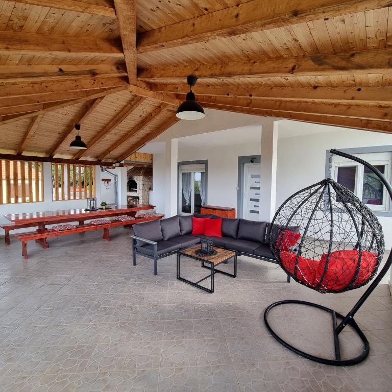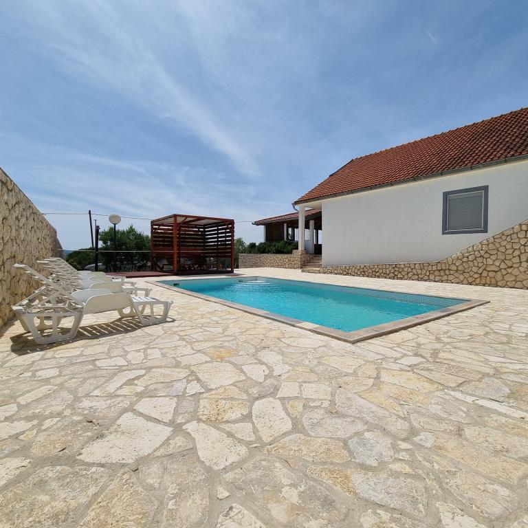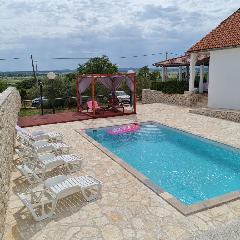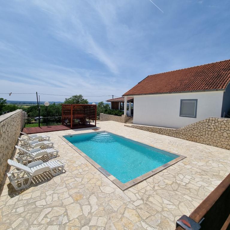 Počakajte na najtoplejši sprejem v počitniški hiši "DA&DO", ki je opremljena z namenom zadovoljiti potrebe vsakega gosta, oprema in izgled pa teži k udobju in praktičnosti. Hiša je sestavljena iz 3 spalnic, 2 kopalnic, dnevne sobe (kavč) in kuhinje. Hiša je opremljena s klimatsko napravo in brezžičnim internetom (free wi-fi). Gostom je na voljo velika pokrita terasa s čudovitim pogledom na Vransko jezero, bazen (7,5 x 4), ter 3 parkirna mesta. Našim dragim gostom je na voljo tudi pokrita letna kuhinja z velikim žarom. Dvorišče 1500 m2 je v celoti ograjeno. Vrana je kraj ob Vranskem jezeru, le 6 km od morja in turističnega središča Pakoštana ter 10 km od mesta Biograd na moru. Mesti Zadar in Šibenik sta od nas oddaljeni 30 minut, do mesta Split pa potrebujete le uro vožnje. Narodni parki Kornati, Krka in Plitvička jezera so nedaleč stran. V naši okolici imate 40 km kolesarskih poti.