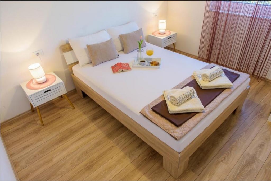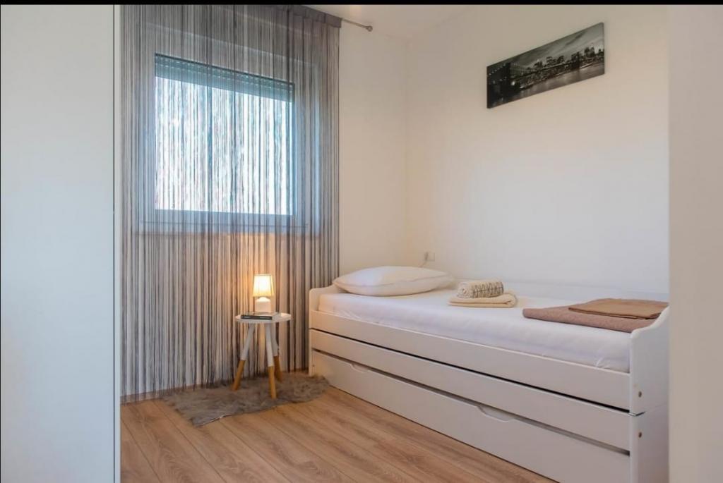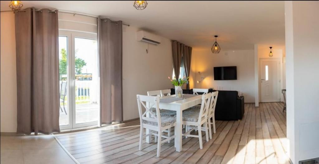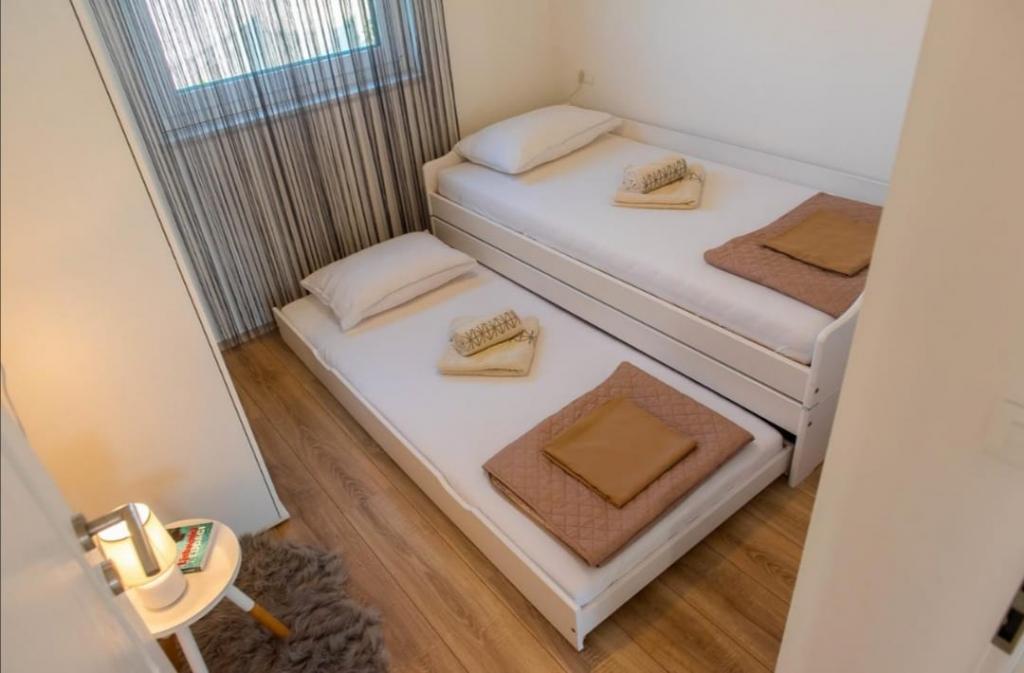 Na voljo od 23. avgusta 2020 dalje Vse variante so možne po dogovoru. Počitniška hiša Aprilis se nahaja v vasi Galovac, nedaleč od Zadra (15 km). Nahaja se na ograjeni parceli s travnatimi površinami in zagotavlja intimnost. Ima vrt, bivalni prostor, kamin (žar), otroško igrišče, trampolin) in bazen z drugimi prostori za uporabo (bazen si deli en apartma) Hiša ima svojo cesto in zasebno parkirišče za 2-3 avtomobile. Hiša je sestavljena iz dveh spalnic (dvoposteljna soba in otroška soba, ki jo je mogoče preurediti v dvoposteljno sobo), kopalnice, stranišča, kuhinje, dnevne sobe in velike terase s pogledom na igrišče in bazen. Hiša ima vse potrebne aparate (klima, wifi, pralni stroj, pomivalni stroj, likalnik, mikrovalovna pečica, aparat za kavo ...). Cena vključuje dve brisači na osebo in celotno posteljnino, ki se menja vsakih 7 dni. Počitnice v naši hiši vam omogočajo, da si v poletnih mesecih oddahnete od stresa in mestne gneče. Idealno je za družinske počitnice